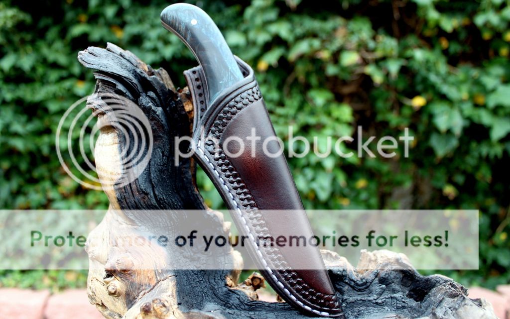 Sheath: Hand Tooled, Hand Stitched, Right Handed, 9 oz. Leather