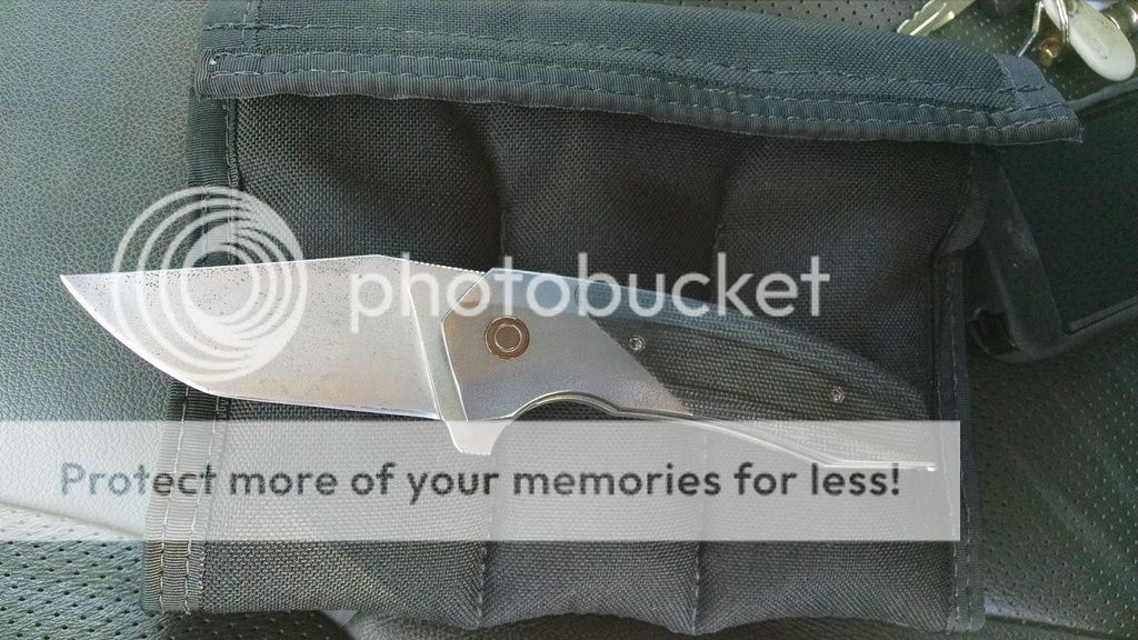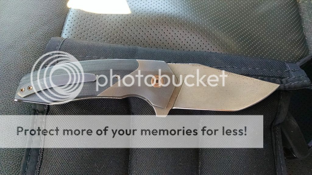 Have this prototype Relic from Dan Brown, a new up and coming maker. Blade length is about 3.5" long with an acid wash treatment that makes it look like a raw bar finish from an Atwood tool. Liners and bolsters have been orange peeled with a blackend/bronzed finish. Handle scales are black canvas micarta. The action is very smooth, the lockup is early and solid. Asking $950 net shipped OBRO. DM me with questions or offers.