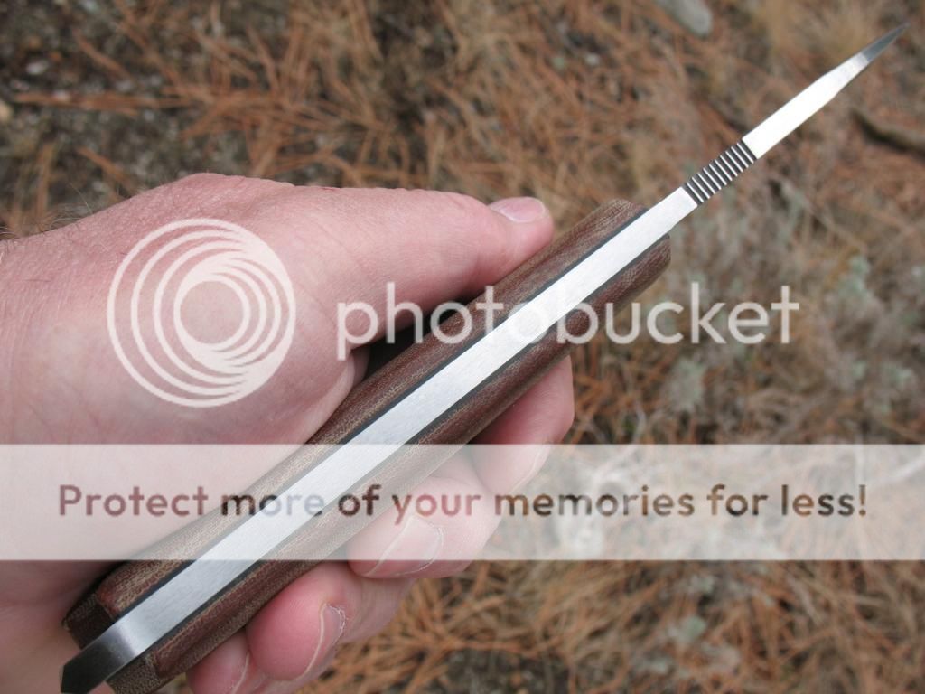 For sale is my Daniel Koster MUCK (My Ultimate Camp Knife). This one remains unused, uncarried and unsharpened. Steel is CPM 3V with an HRC of 60-61 and is .22 thick. The blade length is 6 and the overall length is 11.5. The handles are natural canvas micarta with black liners and aluminum corby pins. The sheath is a Spec-Ops Combat Master that came with the knife. There are a few light scratches on the blade that cannot be felt (most likely from sheath insert). I tried to photograph the knife inside and outside in order to show its current condition. Please PM or email me with any questions and thanks for looking.