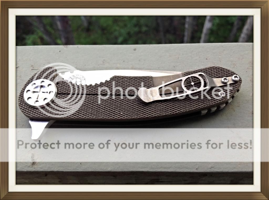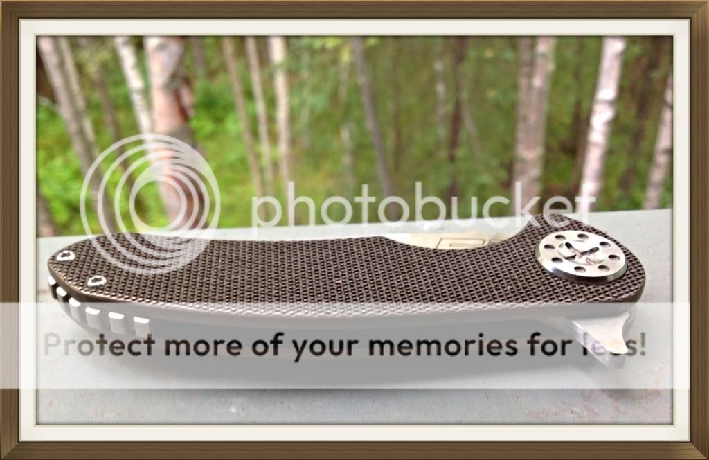 Bronze anodized, polished pivot and the best part finger choile on the 4" blade.