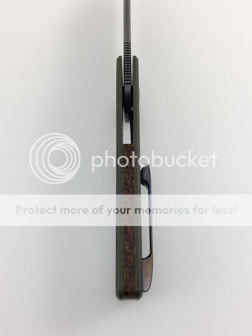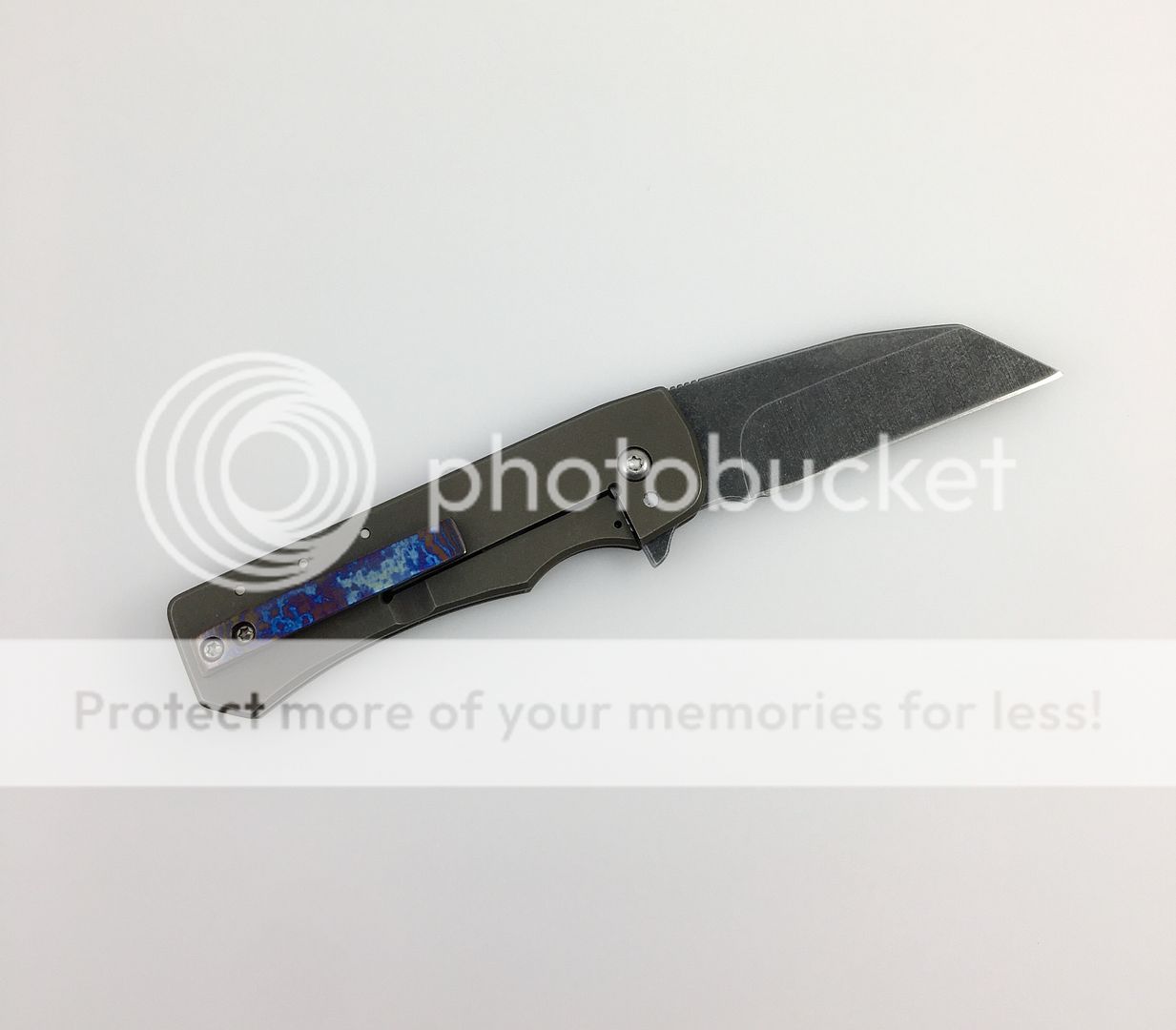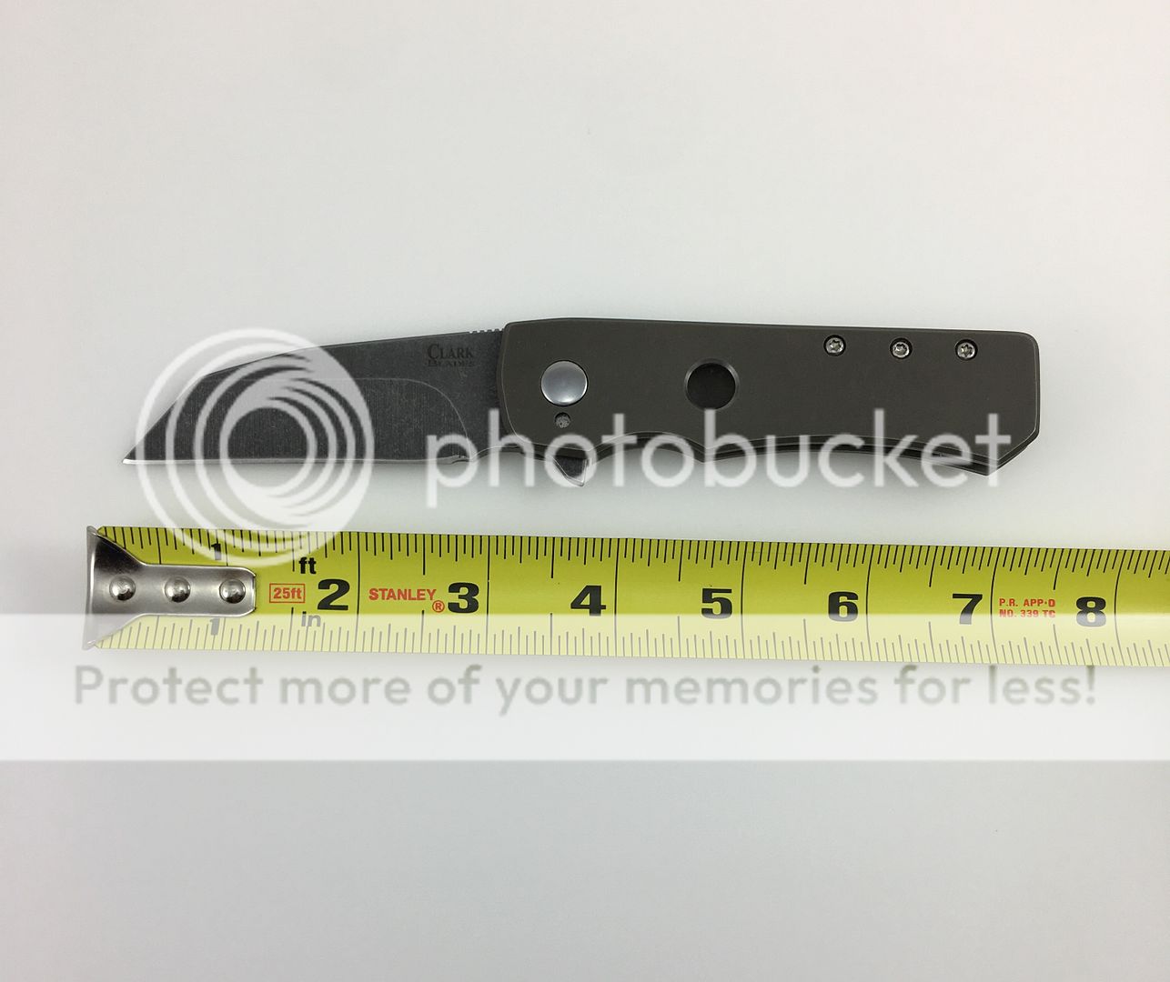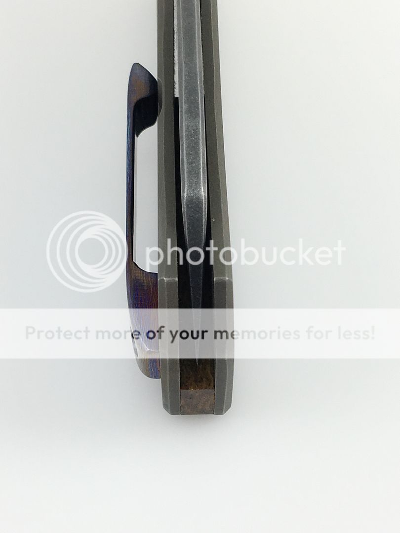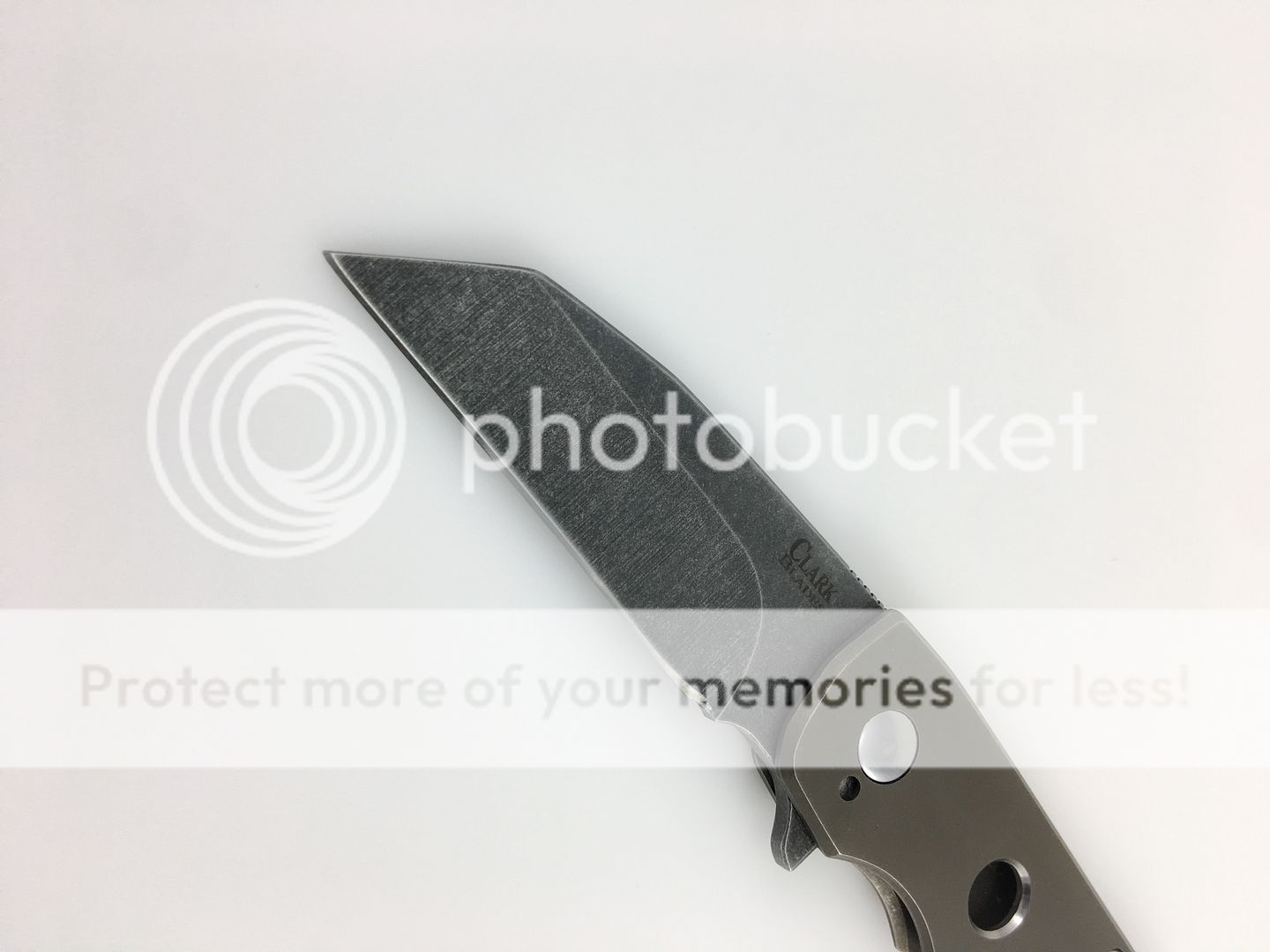 Continuing to thin out my tactical knives. Up for sale is this nice little David Clark. It is his Eagle Head model, wharnie blade, dark washed, with a timascus clip and thunderstorm kevlar backspacer. I am the second owner of this knife, I haven't really carried it or used it a whole lot, it is in excellent condition. There are a few marks here and there from carry, most can be seen in photos, nothing major though. Blade looks to be free of scratches. Runs on ceramic bearings, nice action, early lock-up, no blade play, centered, I have not sharpened this knife, it is nice and sharp still. Blade length is about 3", OAL is just over 7". Would make very nice little EDC piece. Asking price is $325 shipped, paypal only, CONUS only, no trades please. Thank you for your interest!