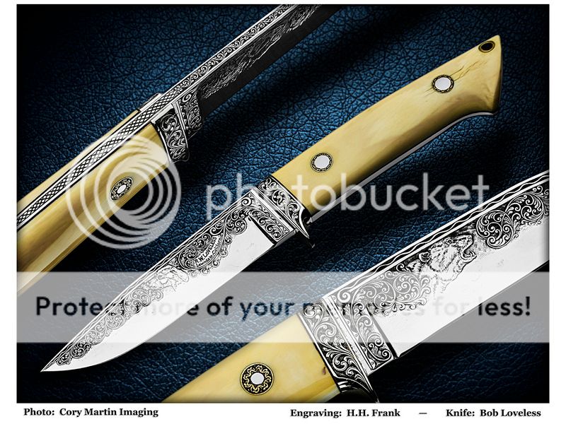 Notice instead of the Loveless logo, H.H. Frank engraved the name on the blade.