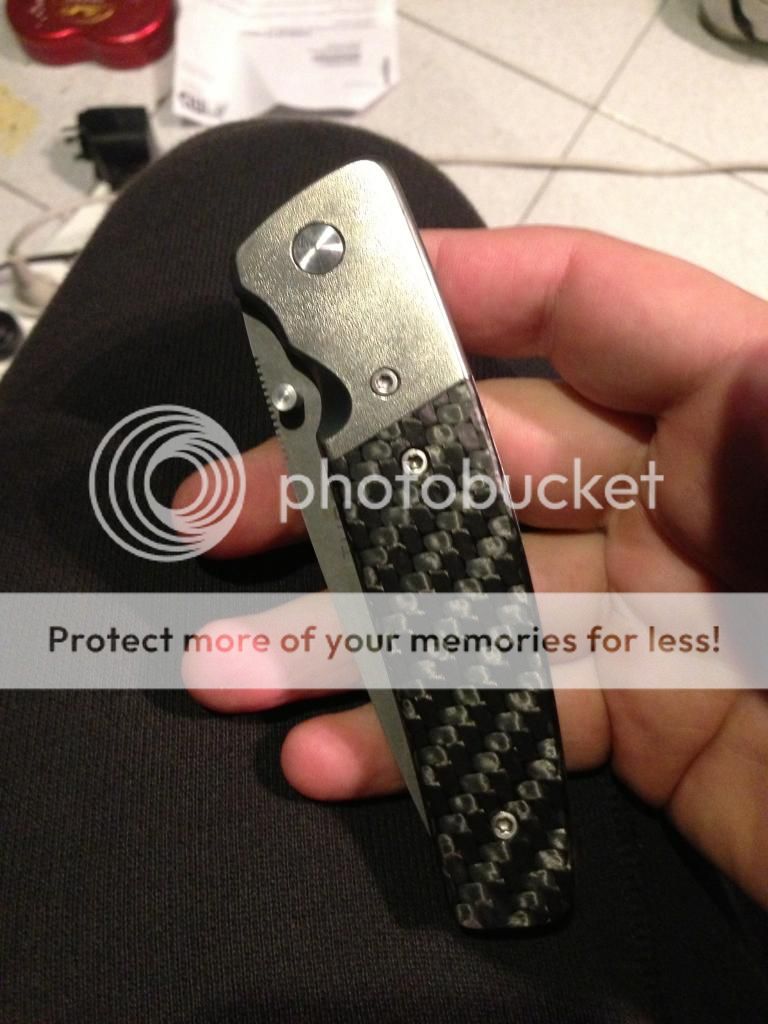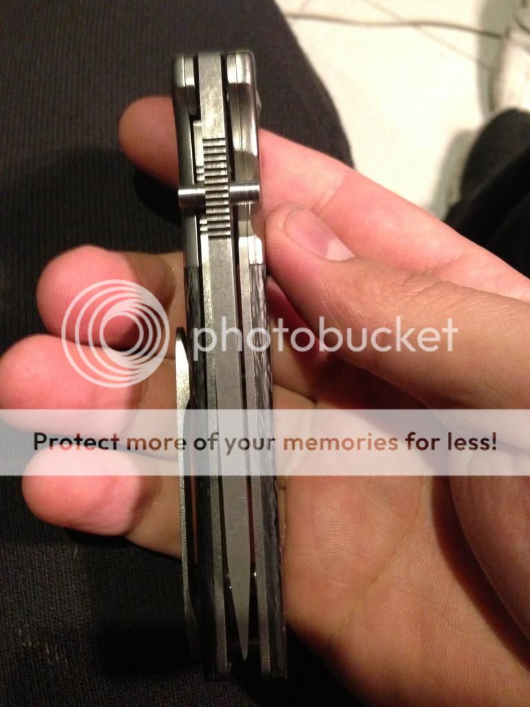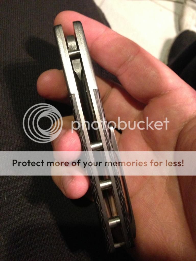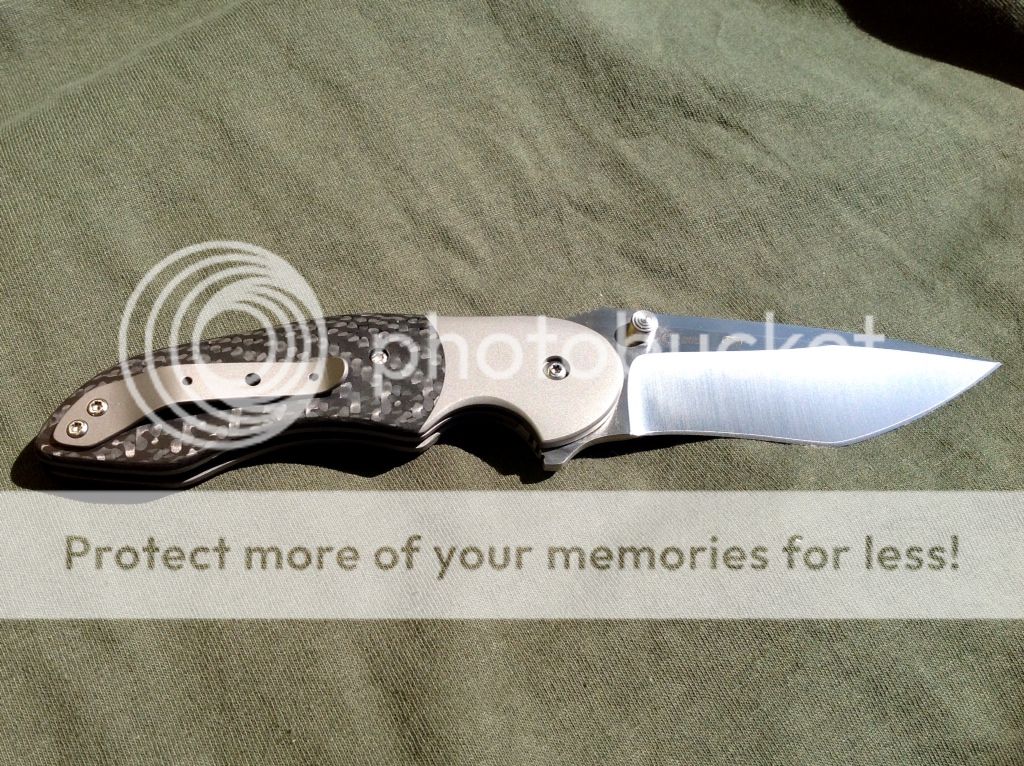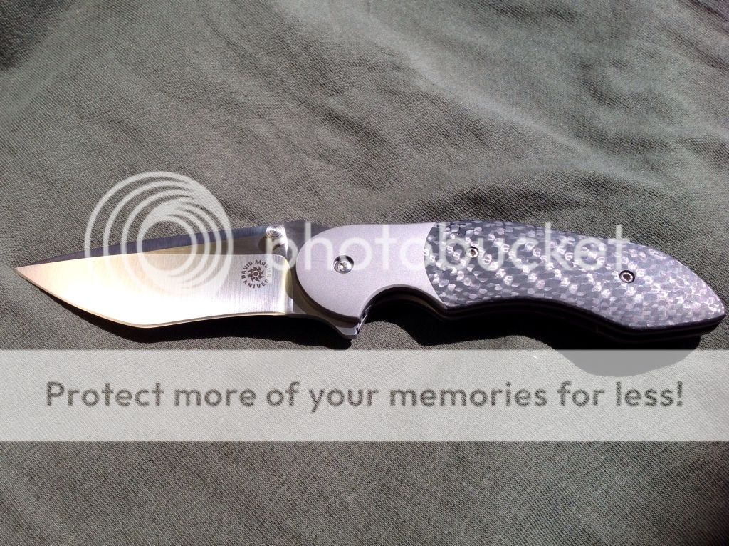 HANDLE: FULL TITANIUM WITH CARBON FIBRE INLAYS AND TITANIUM BOLSTERS CONTOURED WITH FINGER LIKE GROOVES. AMAZING WORK BY DAVID.