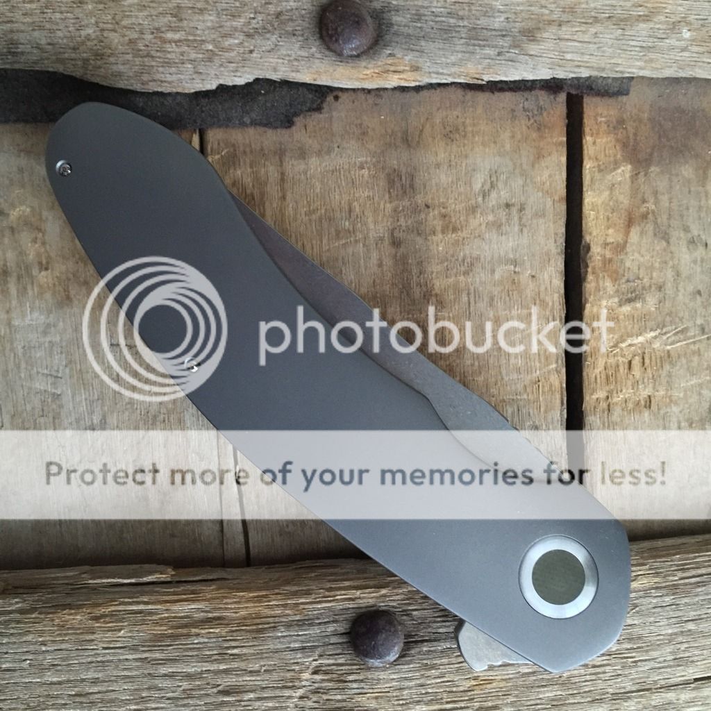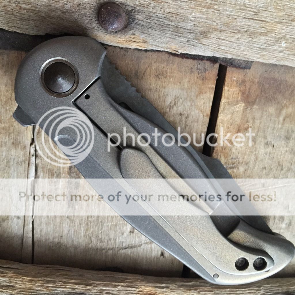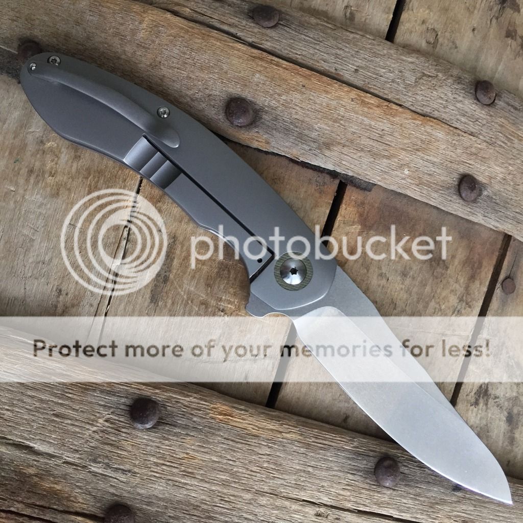 David Mosier Small Kreios. Only 2 have been currently made. This one is in great condition only thing I can see is on the pivot screw some slight scuffing around the torx hole from the previous owner tightening or loosening the pivot from the tool. Very snappy and smooth, sharp, solid lockup. The specs are 3,25" blade and 7.6" overall. I have never arried or used the knife. I believe the previous owner did. No signs of wear or tear... David has great Fit and Finish on this one.