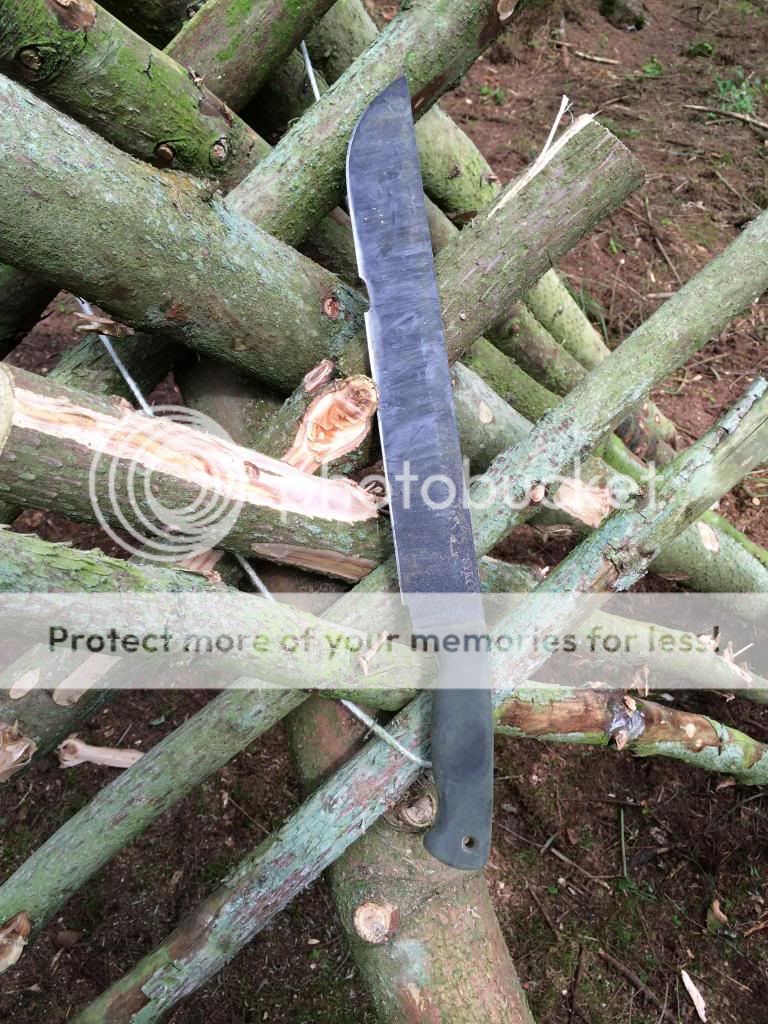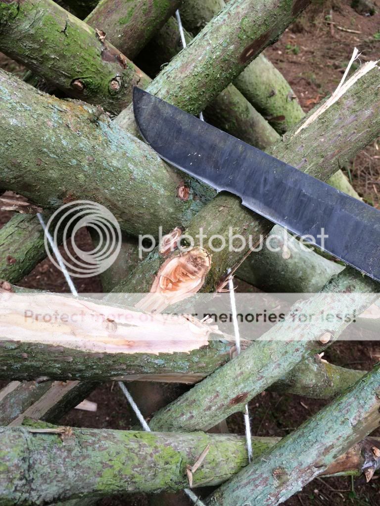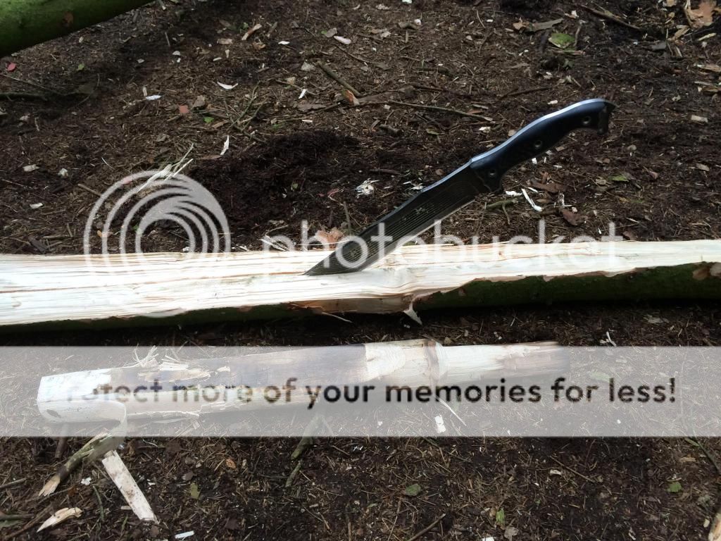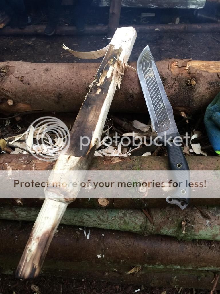 For the last 8 months or so I've been working with a couple of guys on building a survival school. Various shelters, benches, tables etc all had to be made and of course this gave me plenty of time to use my blades, axes and saws. My go to blade was my SYKCO1311 (the King), I used this blade pretty much every weekend for 8 months straight. Jobs included limbing downed trees, cutting saplings, sharpening stakes etc, I even took down a live tree 4 inches in diameter to see if it could be done. Most of the wood we used was live or very recently dead due to storm damage, there was however some dead standing that we used.