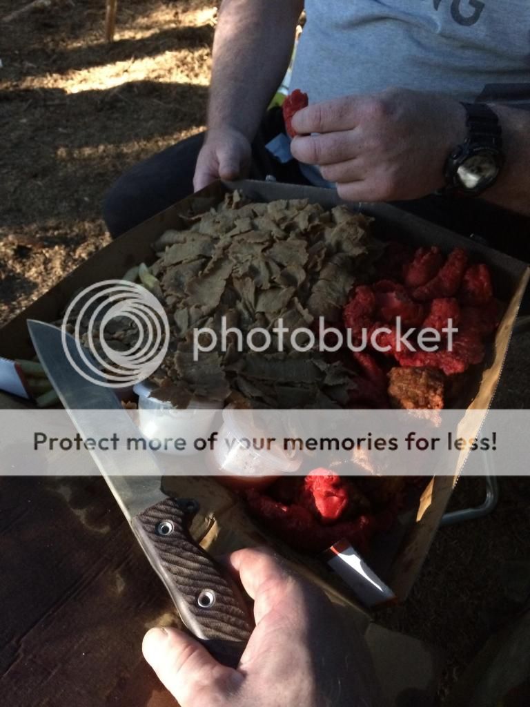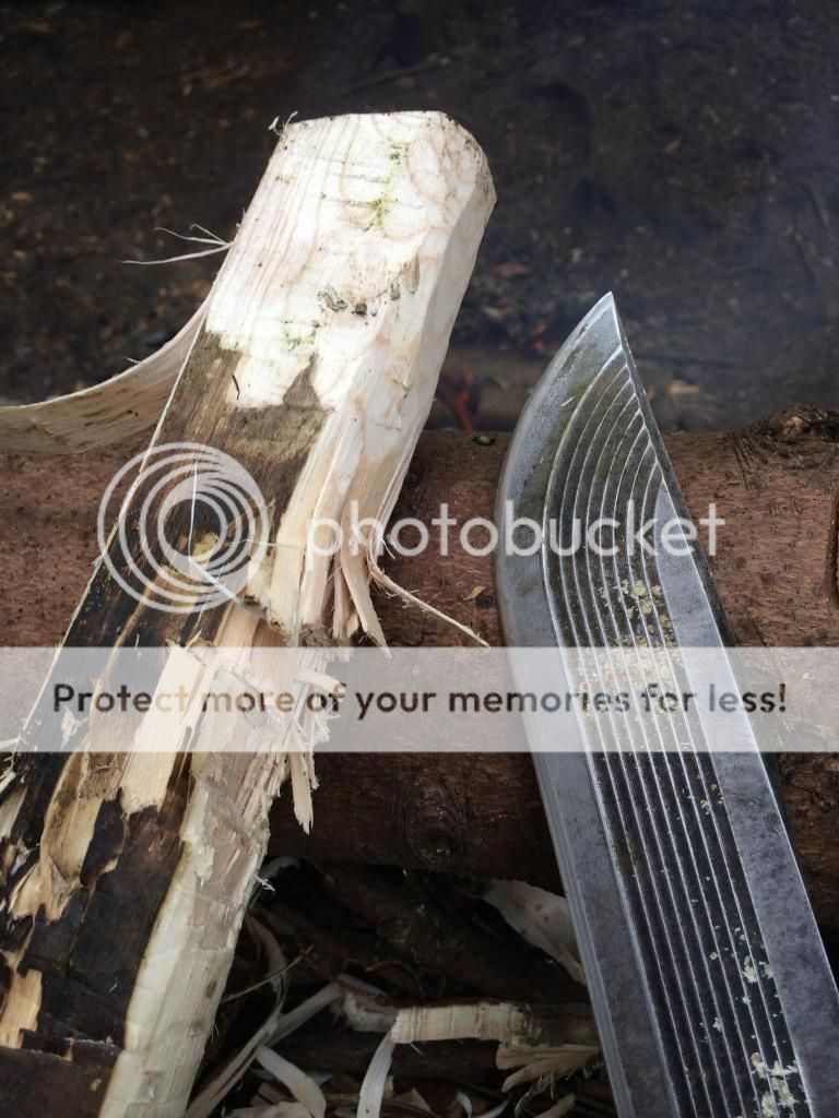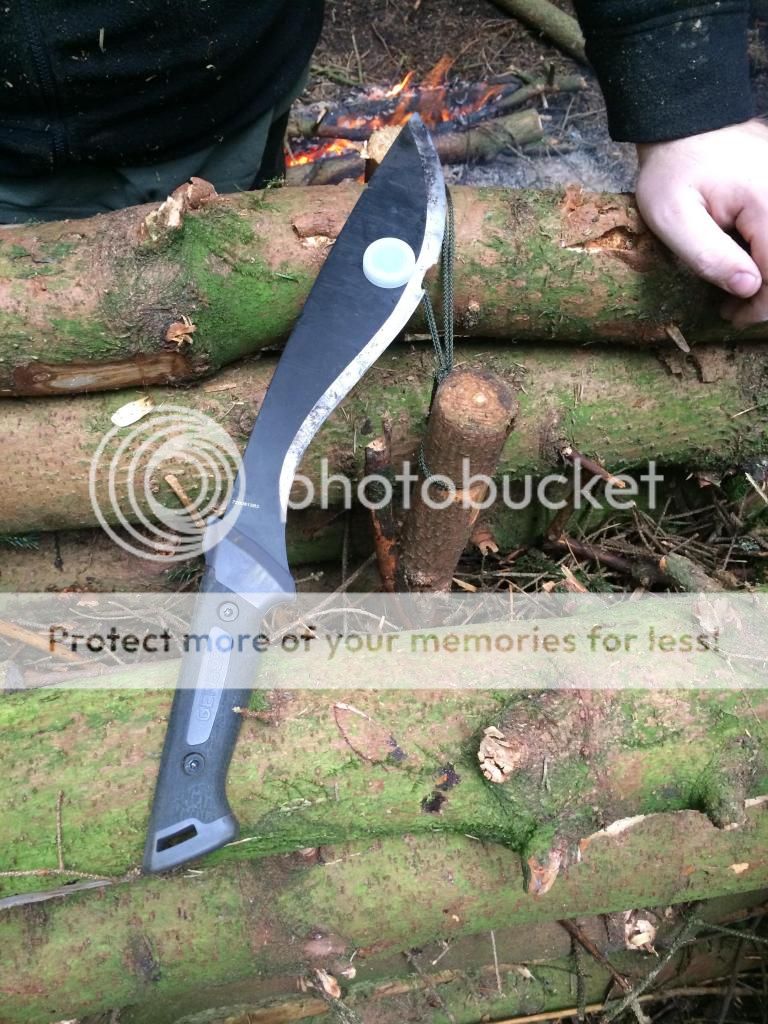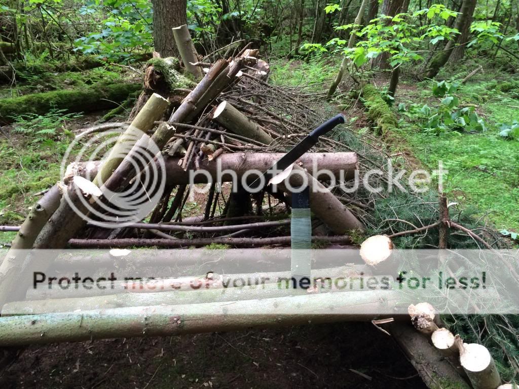 For the last 8 months or so I've been working with a couple of guys on building a survival school. Various shelters, benches, tables etc all had to be made and of course this gave me plenty of time to use my blades, axes and saws. My go to blade was my SYKCO1311 (the King), I used this blade pretty much every weekend for 8 months straight. Jobs included limbing downed trees, cutting saplings, sharpening stakes etc, I even took down a live tree 4 inches in diameter to see if it could be done. Most of the wood we used was live or very recently dead due to storm damage, there was however some dead standing that we used.