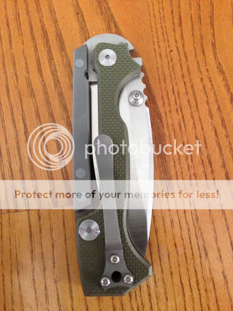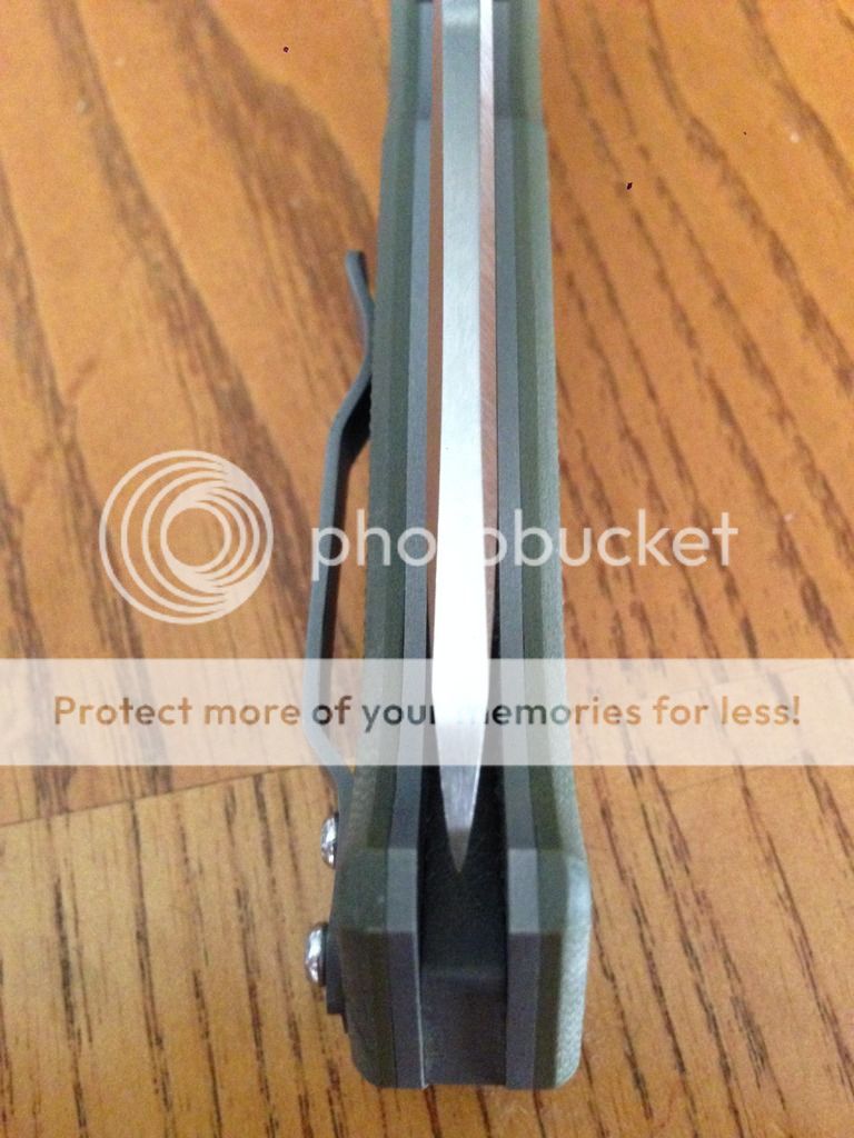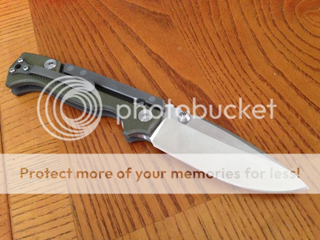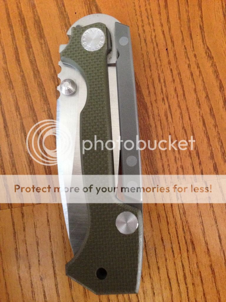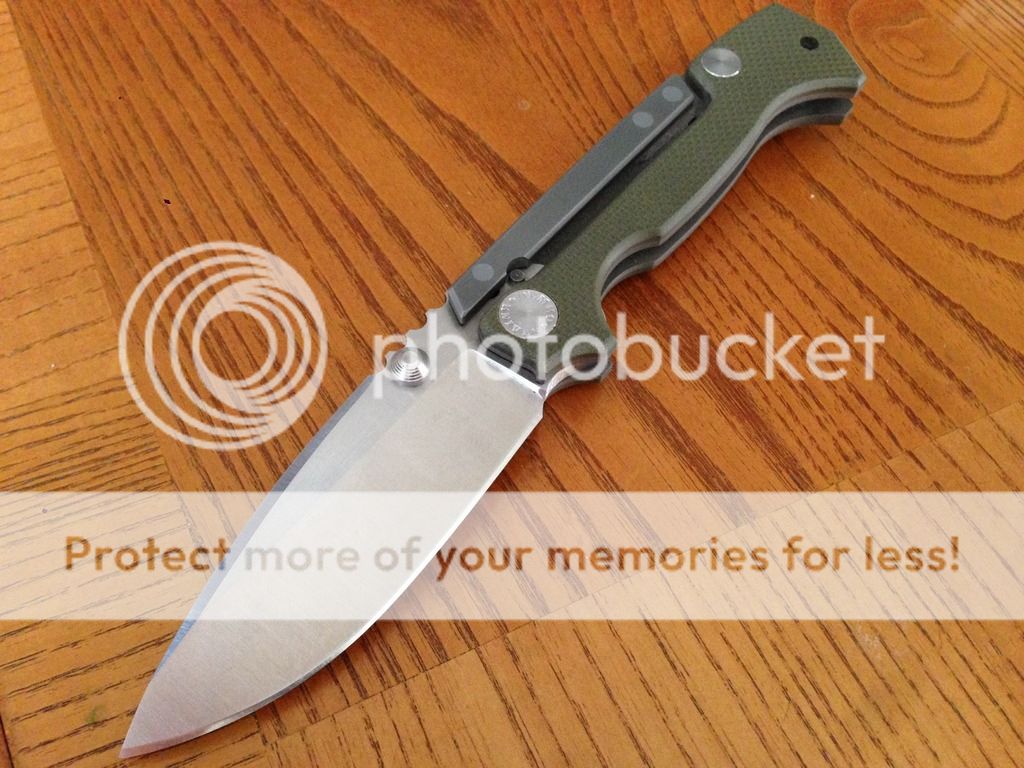 This is an Andrew Demko AD-15 built to my specs that I am selling because it is simply too large for my taste. CPM 20CV blade, to frame with od green g10 scales. I had this one built without the safety because it is completely unecessary and IMO the knife looks way better without it. This has been carried and used. I did sharpen it once but followed Andrews original edge angle. Only wear that is visible is on the clip. Blade is slightly off center when closed as you can see in the pic. Handle scales are only drilled and tapped for right hand tip up carry. If you are a lefty, a quick trip back to Andrew would take care of that. All in all it is in very good condition and the edge is still very sharp. Asking $550 shipped and insured CONUS only. Comes with pouch just as it came from Demko. Please pm or email any questions. Not looking for trades. Thanks.