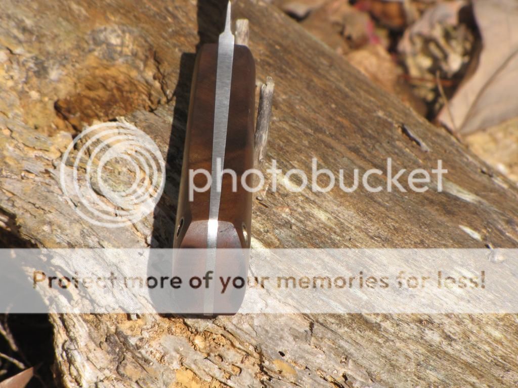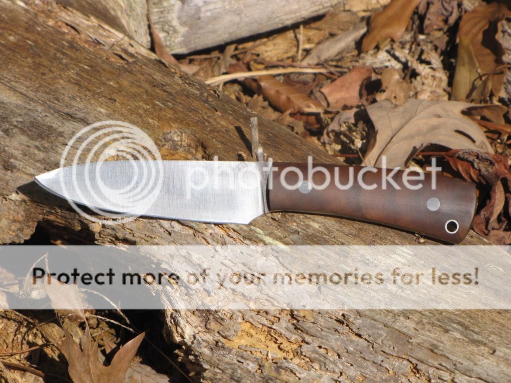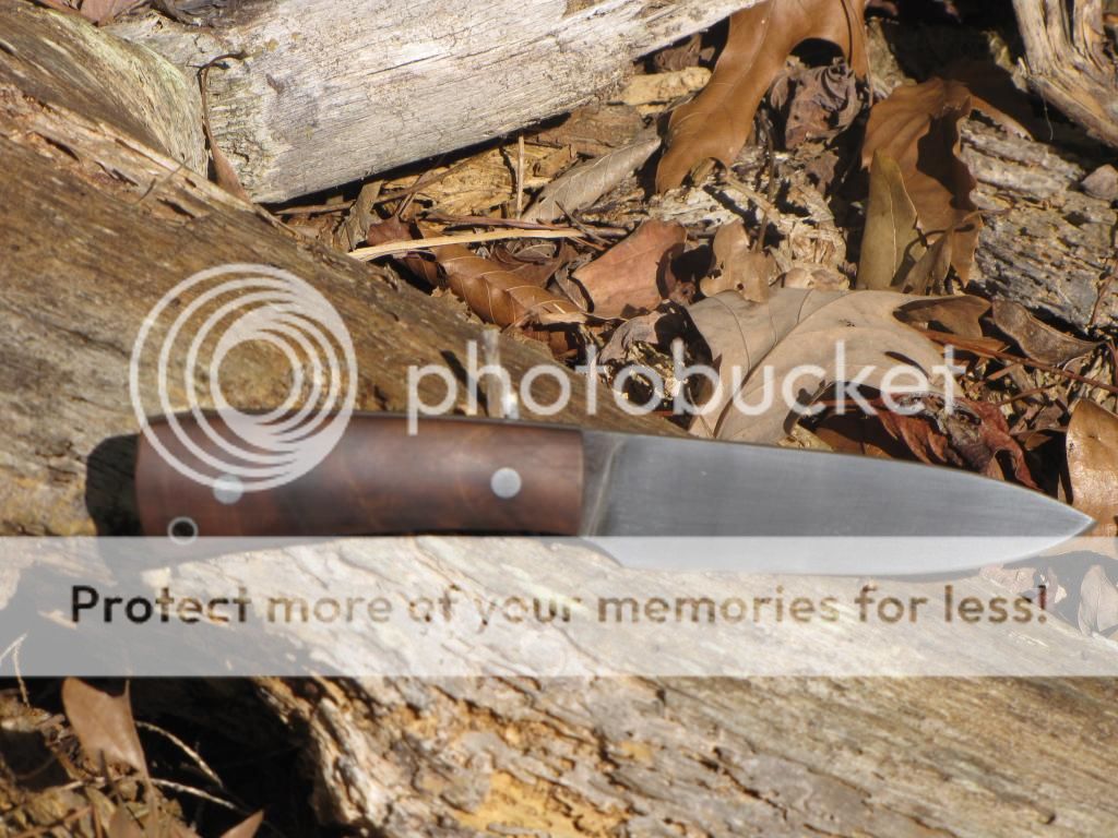 I forged this knife during a demo showing the process of forging a blade. It is forged from 52100. The blade is 4 1/2". Handle is 4" with stabilized Walnut scales, stainless Corby bolts and a tube. It is heat treated in digitally controlled equipment to 57-58 RC. This one is super sharp and ready to go. I haven't made the sheath yet so it comes with leather sheath of your choice.