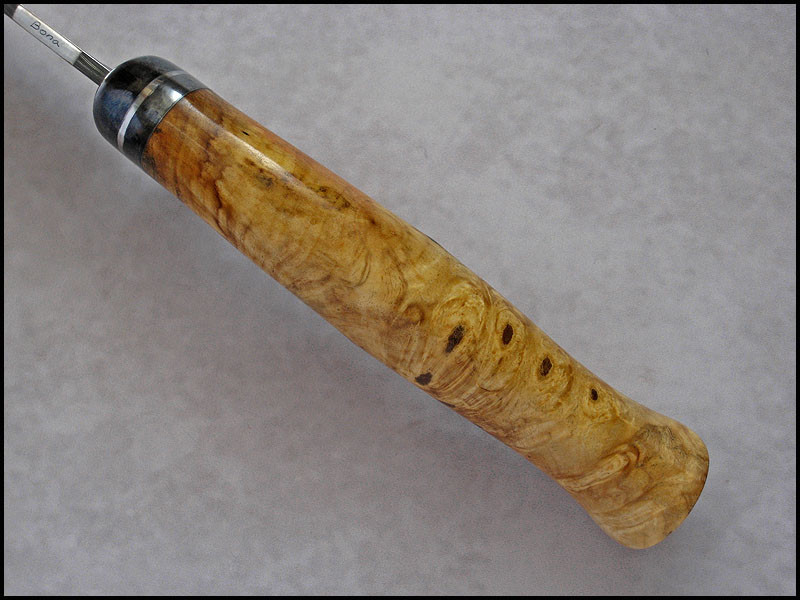 handle – 1018 carbon steel, stainless steel, stabilized Buckeye Burl