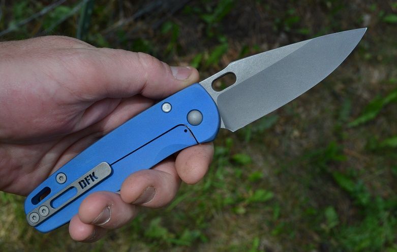 Everything is Titanium besides the hardware which is heat colored stainless steel, I used self lubricating phosphor bronze washers. Non-sharpened swedge