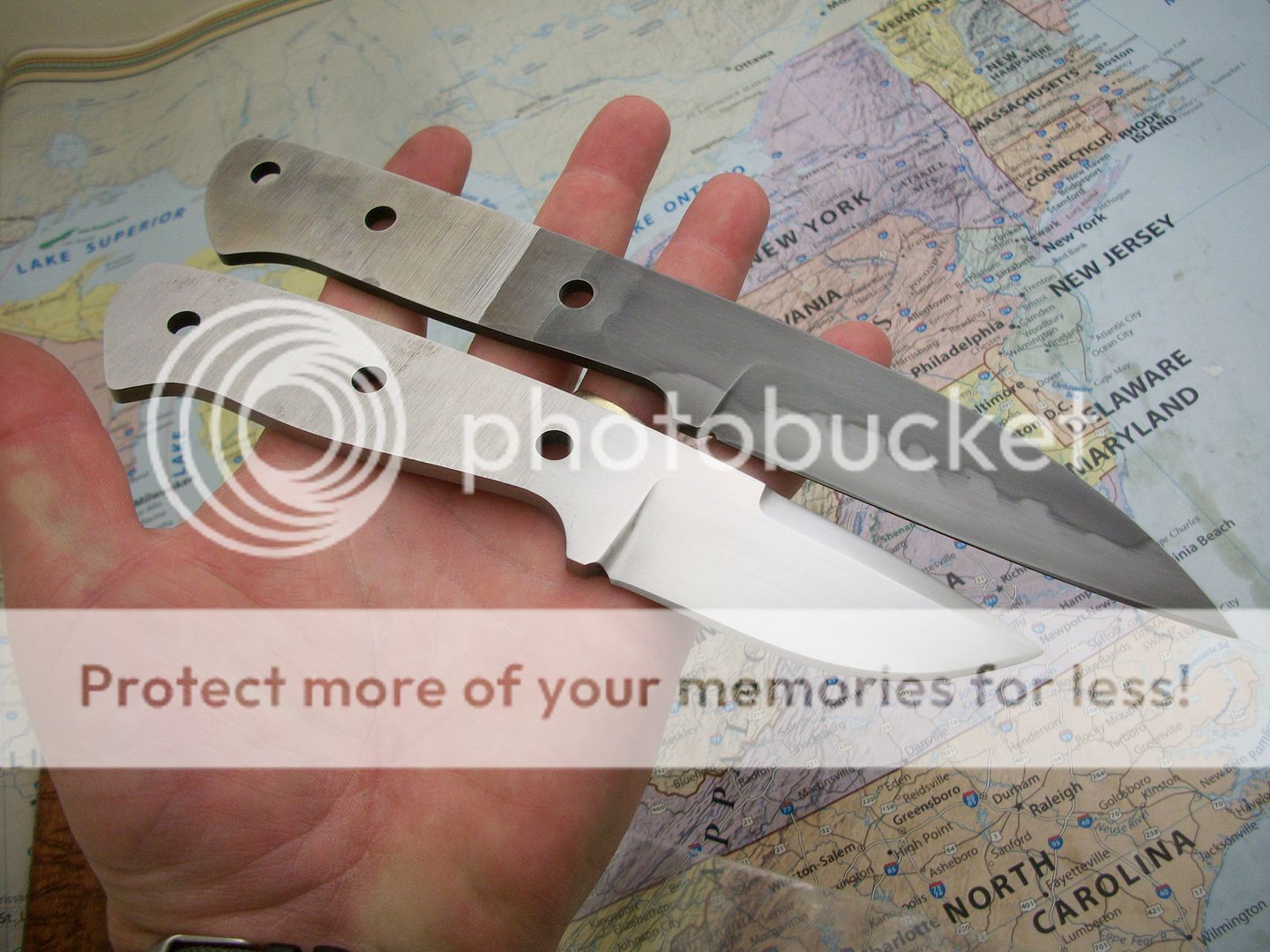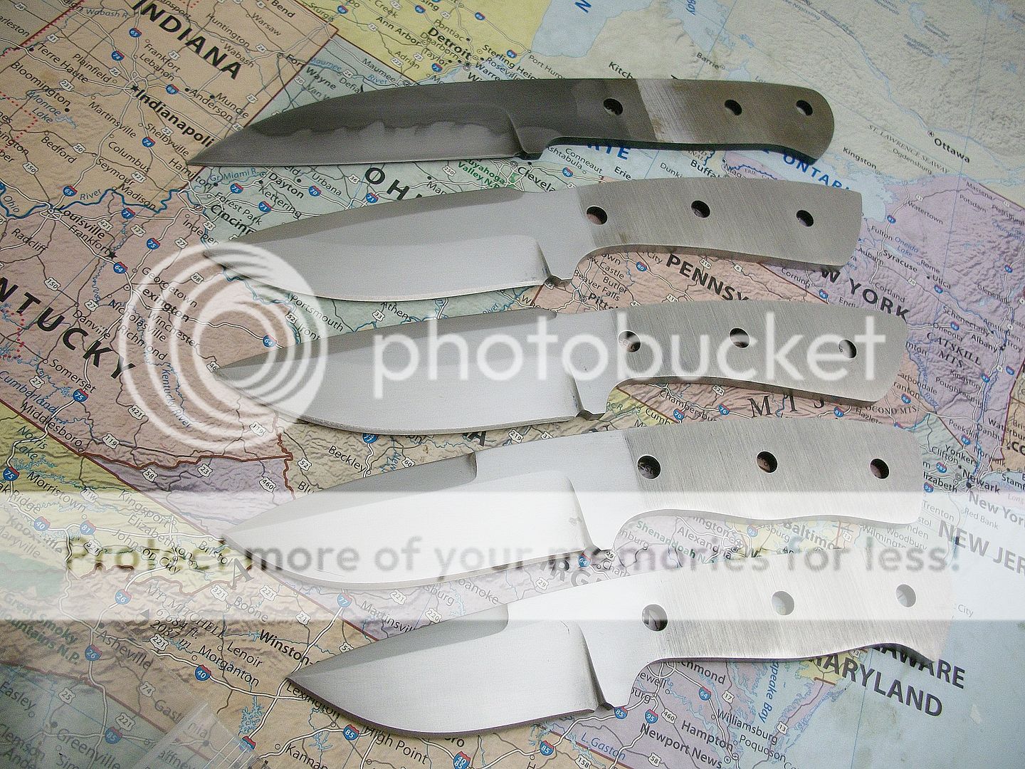 HERE ARE A FEW 1095 BLADES THAT ARE LAYING ON THE BENCH SEEING NO LOVE,ALL HAVE BEEN STOCK REMOVED,GROUND AND HEAT TREATED IN HOUSE,ONE HAS A HAMON,IT DOES NEED SHARPEND THE OTHERS I KNOCKED A EDGE ON WITH A LITTLE HAND RUB OR BUFF THERE READY TO GO.I WILL SALE THEM AS SINGLES OR AS A 5 BLADE LOT
