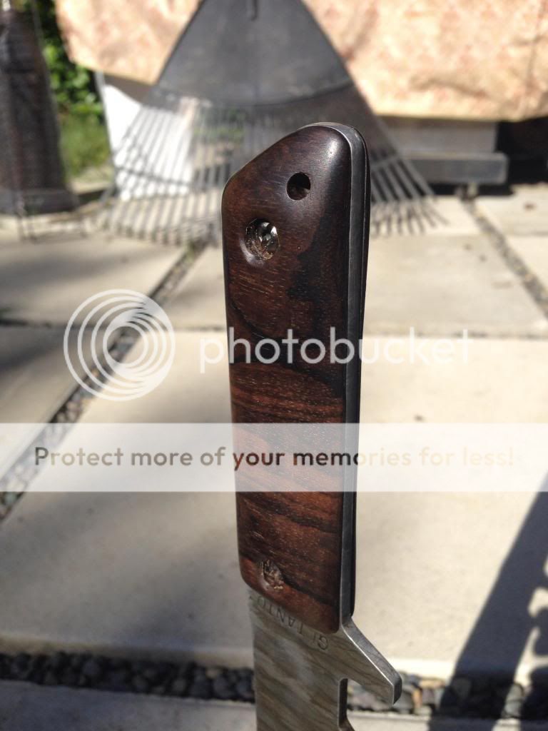 Polished then Bronze/Gold head anodized hardware, blue glow powder in the tip down pocket clip holes, grip tape, sharpened the gimping on the flipper. I plan on making a Orange/Toxic green back spacer for it sometime :thumbup:
