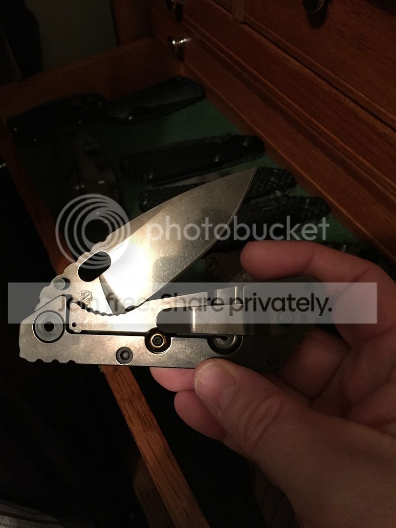 DLC SnG in like new condition. Both the blade and lockside are DLC. It has a really nice bronze/dark brownish, shimmering color on the blade and Ti lockside. It came with a black Lego scale and currently has a cuscadi carbon fiber scale and spacer on it. Blade is S30v, rock solid with no movement. Pete grey LBS and both scales included.