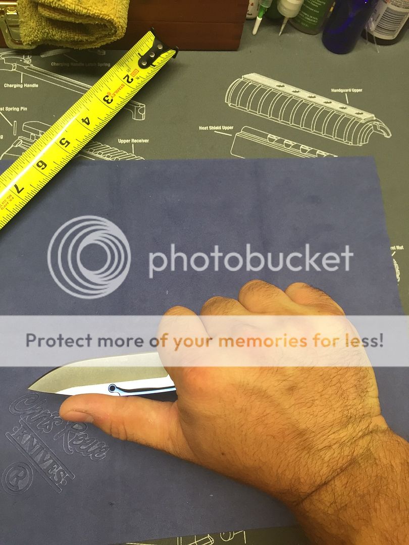 scale with my finger in the front choil to have the scale fit my hand. I'm not sure if the scale would