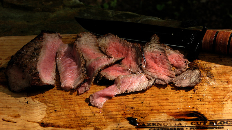 Next a little chopping. Here is one place where I see many newer survival knives suffer. Those with the handles angled down, and the overly thick ones, make slicing and chopping food way more difficult than it has to be.