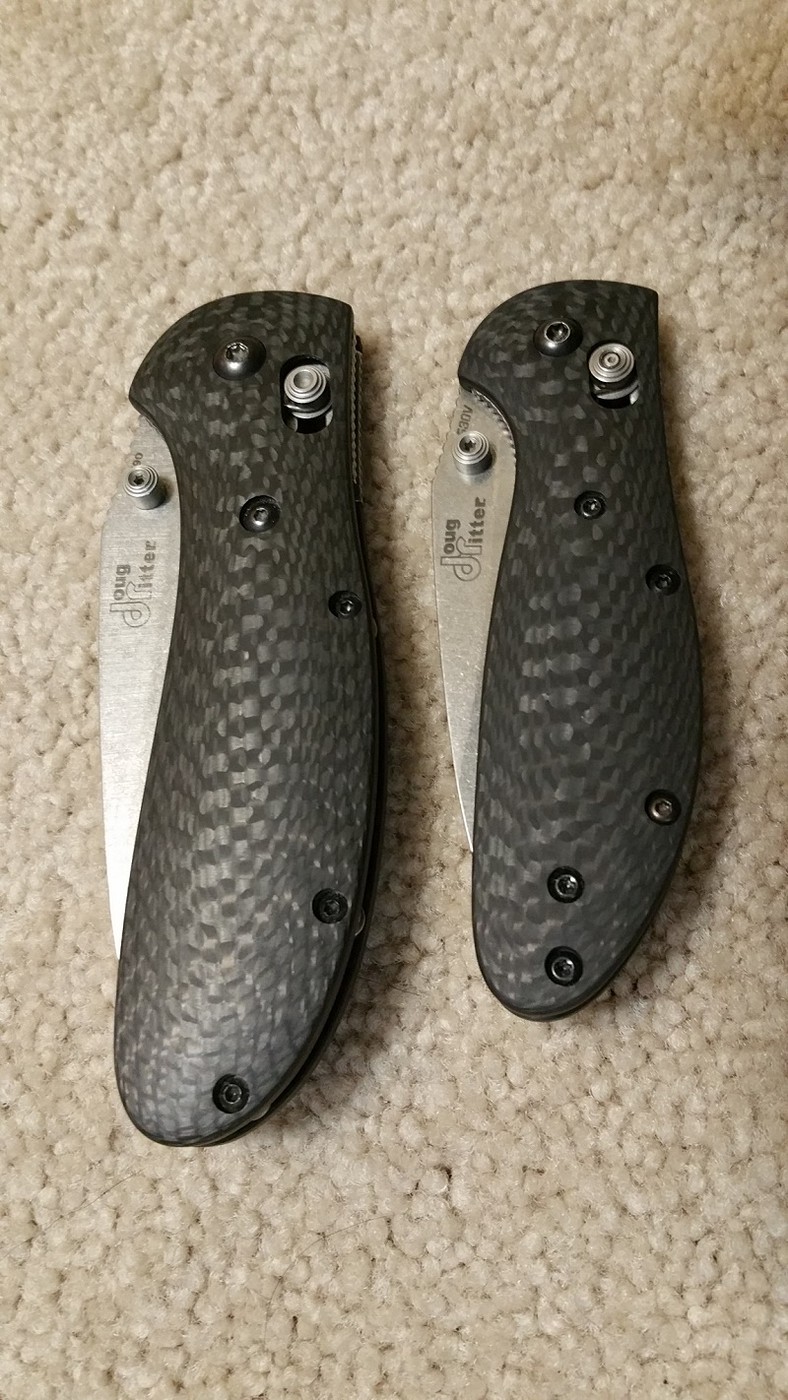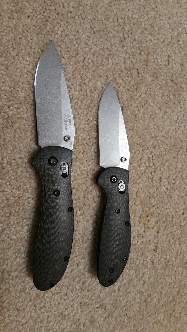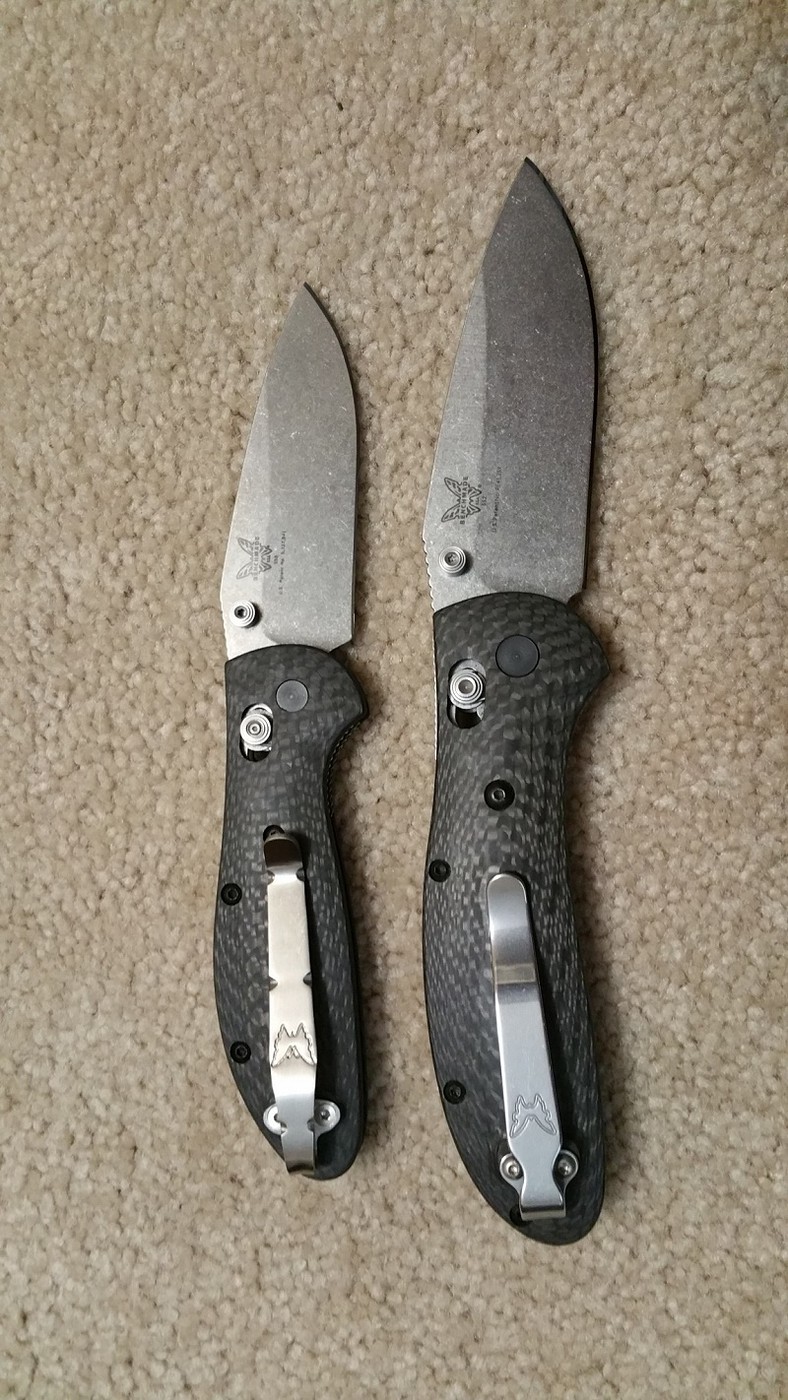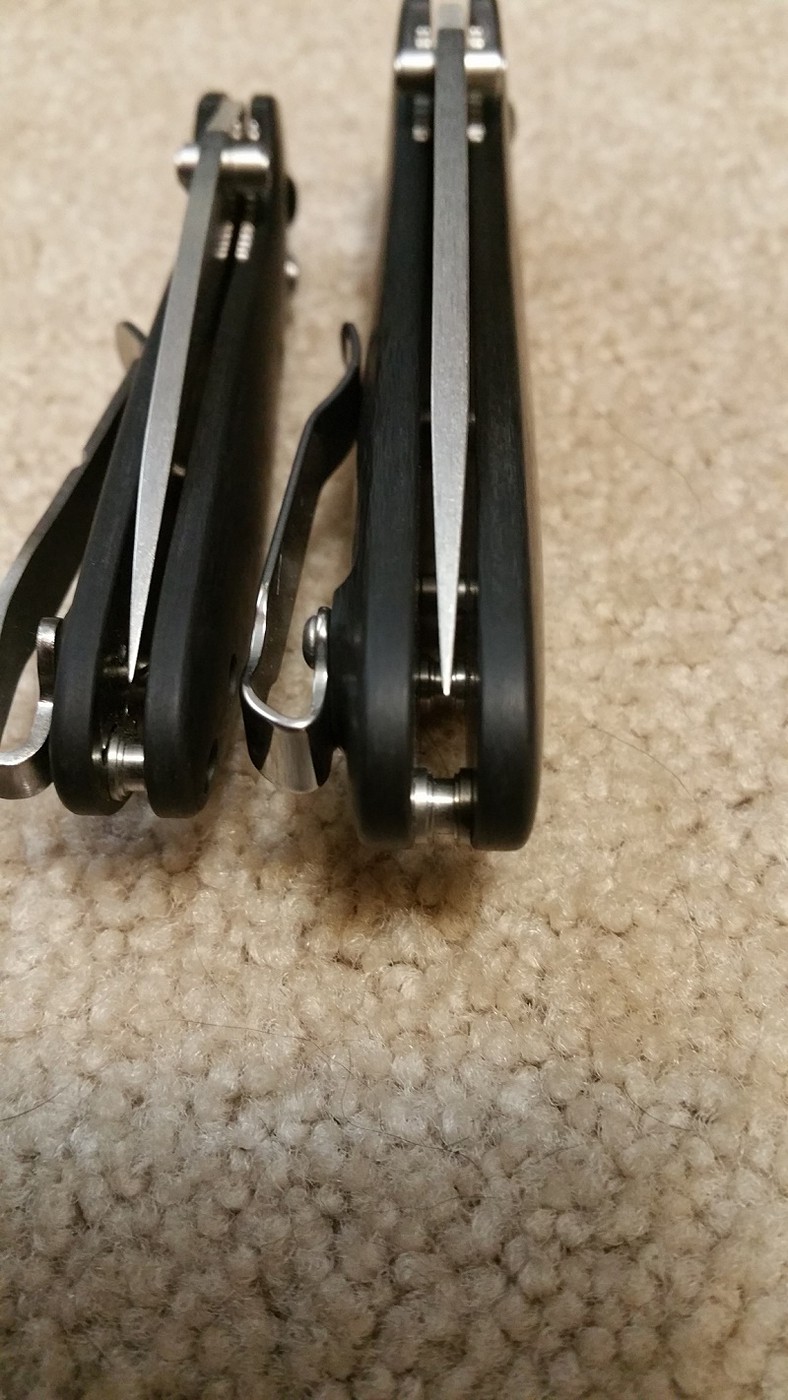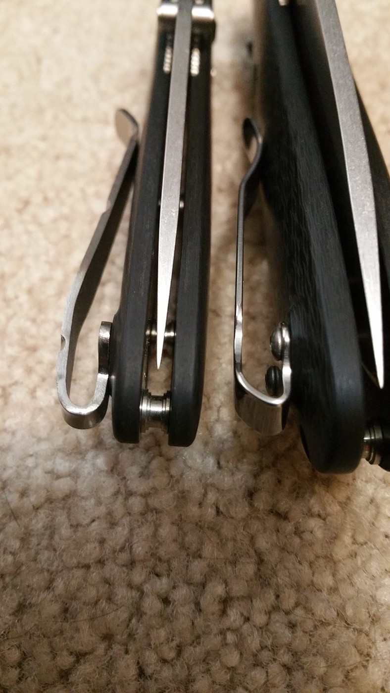 Both knives are in excellent condition with VERY little use. Both are very smooth with great lockup and both are nicely centered. Both sport deep carry clips. The larger Griptillian has been sharpened to a mirror edge and is scary sharp. The Mini-Grip still has the factory edge.