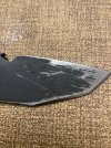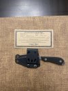 Used. Still has factory edge. No box. Has certificate from white river. Kydex sheath is on the loose side. Please note that I drilled two holes in the kydex belt loop.