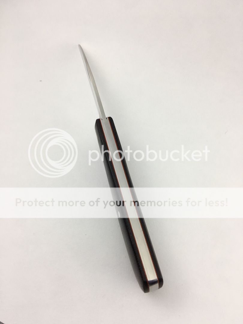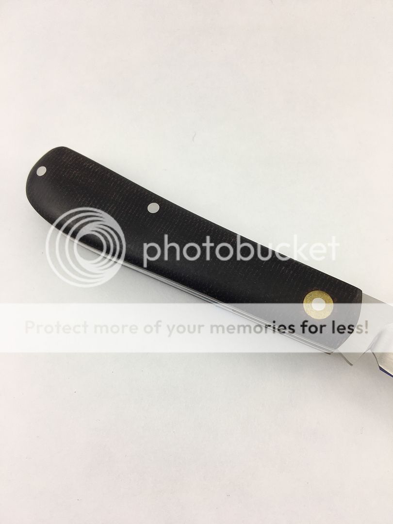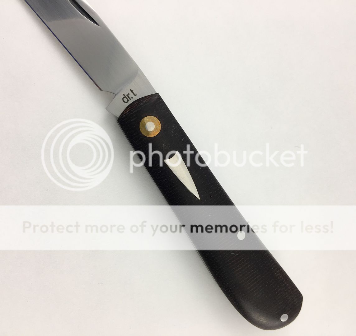 First one is a Dr. T Swayback Jack in vintage double brown micarta with orange g10 liners. I am original owner of this knife, purchased it new from a dealer. It has been used and carried some, but very minimal. The blade is free of scratches, there are some small marks here and there on the handle/spine from carry, but nothing major. It has a very nice action, and would make a nice EDC. Blade favors the right side, you can see it in the picture. Asking $425 OBRO.