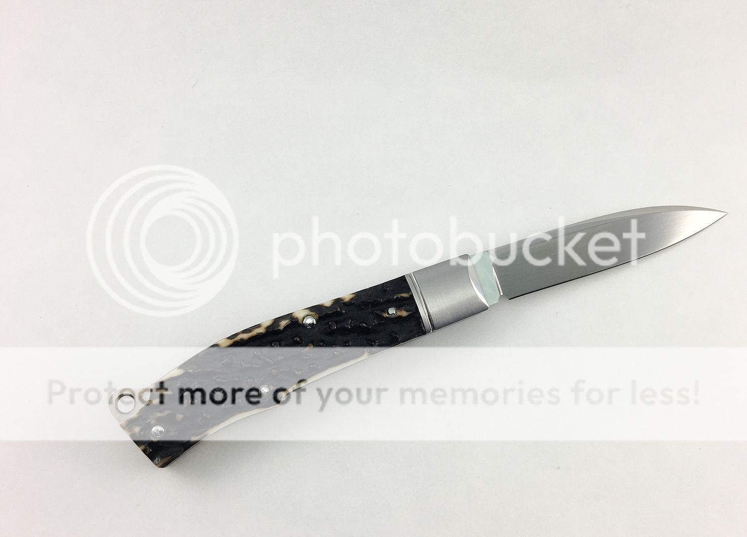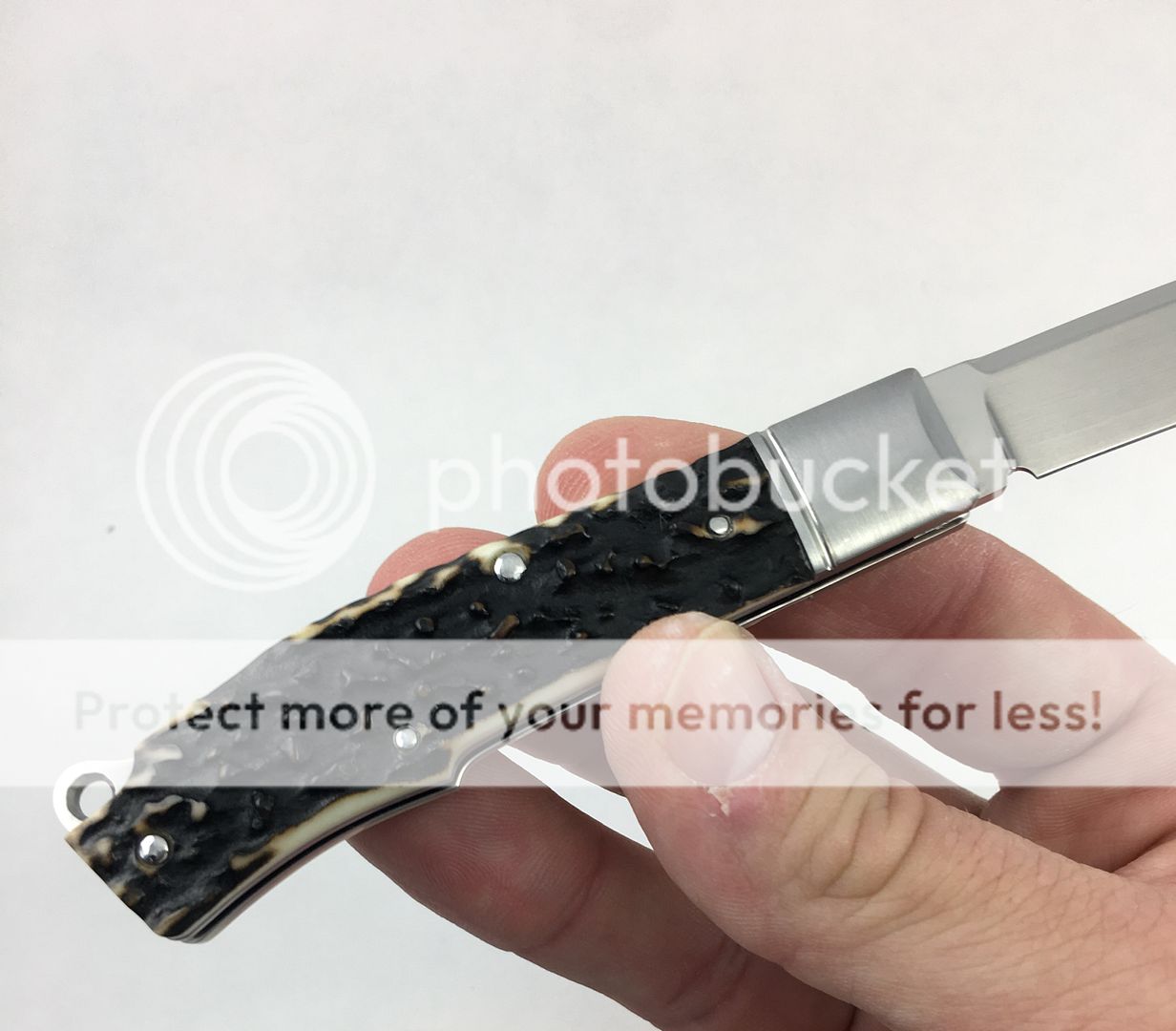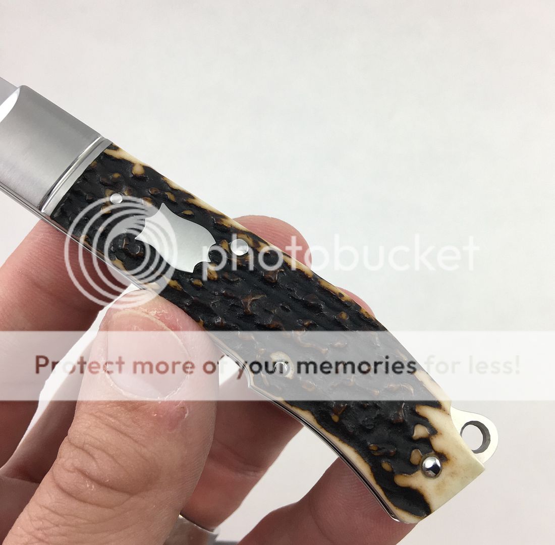 Next is a Ryuichi Kawamura Gunstock Jack w/Gunhammer Lockback. I purchased this knife new from a dealer this past year. Absolutely beautiful knife. I have carried it maybe twice in a pouch, it is a safe queen. Silky smooth action, solid lock up, no blade play, and gorgeous stag. Blade favors the left ever so slightly. There is one small mark on spine I was unable to photograph, but in the right light it is there. There are no other marks on the knife that I was able to see or photograph, but since I have carried it, I will assume there is one or two somewhere as that always seems to be the case. This is truly a beautiful piece. Asking price for this one is $1050. DM me with any questions, thanks for looking!