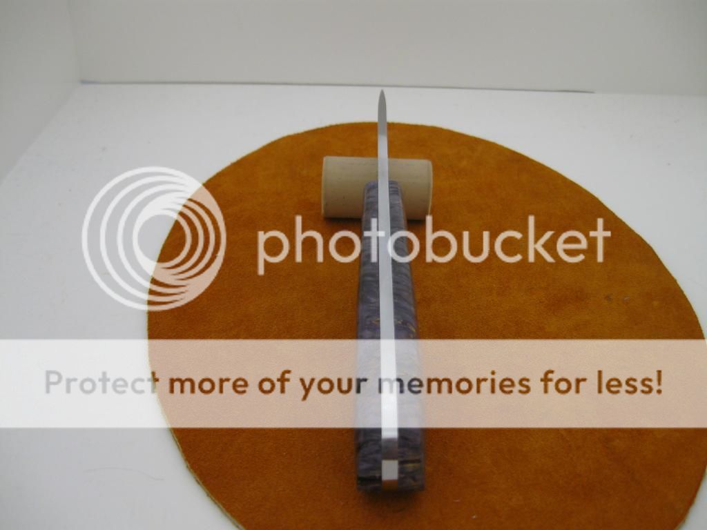 Steel is ATS34, heat treated by Peters', mirror finish.