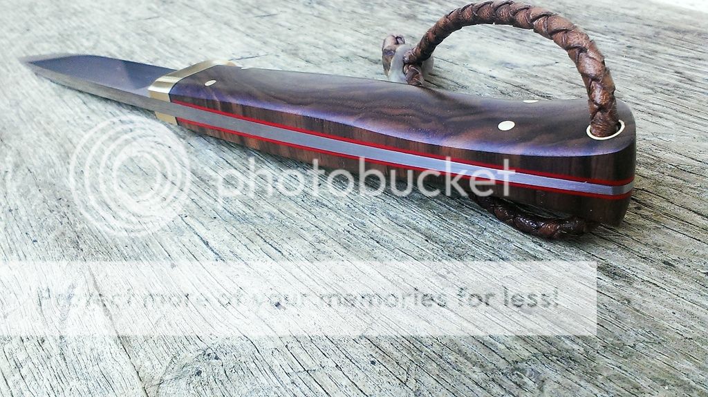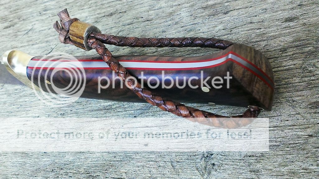 Handle is stabilized walnut,brass and black and red vulcanfiber.