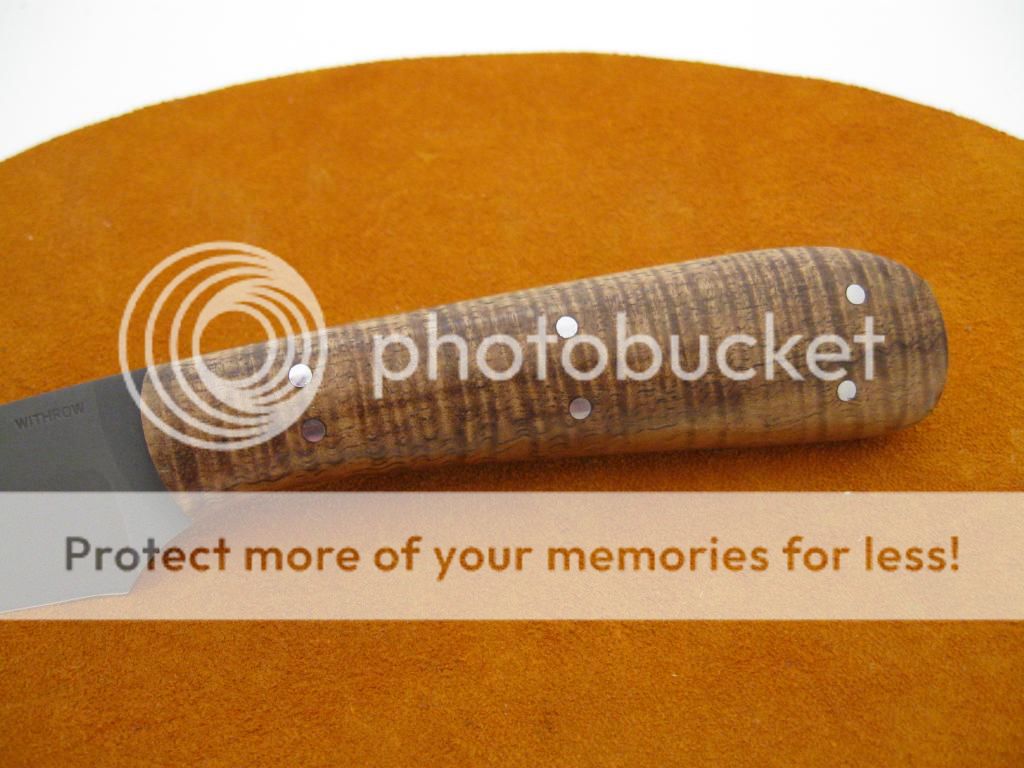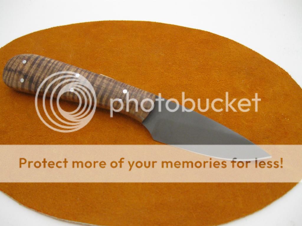 Blade: 2 7/8 inched from tip to handle. S35VN steel. Bead blasted and etched. Heat treated by Peter's. RC 59/60.