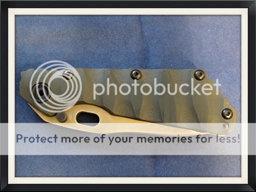 Scales are Carved Ti and Carved Green G10, early lock-up, perfect centering, smooth opening.