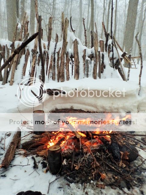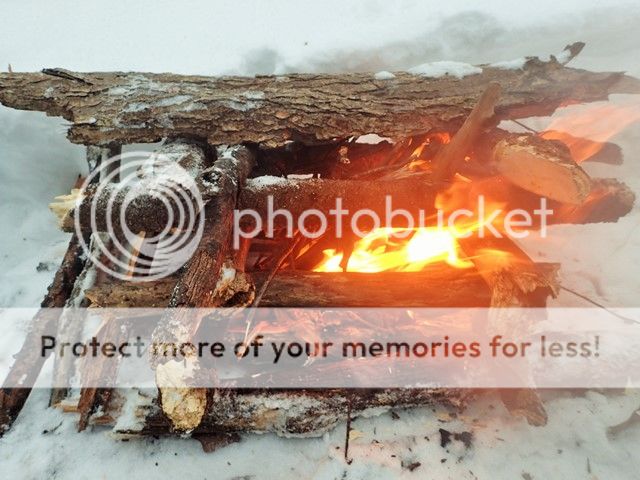My saw never came out of the pack and the knife was used for packaging and slicing Spam. The fire was just about wood selection and the kind of fire-lay that burns hot and dies down to coals. The wind actually helped the fire too.