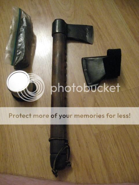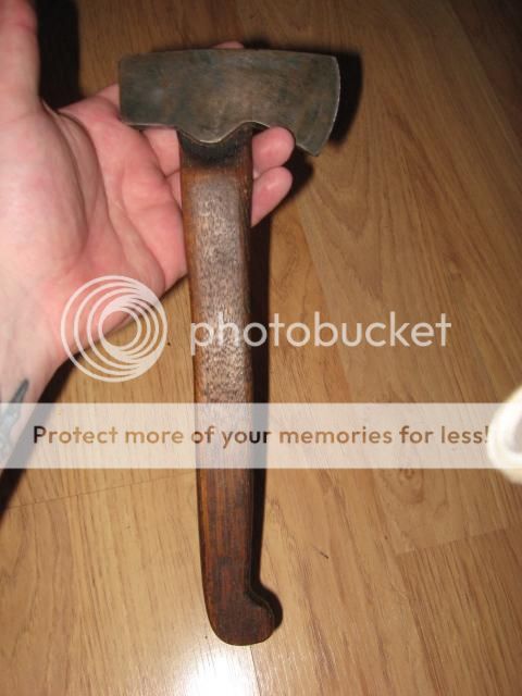 Forged bag axe. This little booger has a 1.75" edge. Comes with adjustable buffalo sheath. Unknown smith. Bought it from a colonial vendor on ebay, who says it was made at a local smith school. 50 shipped. SPF