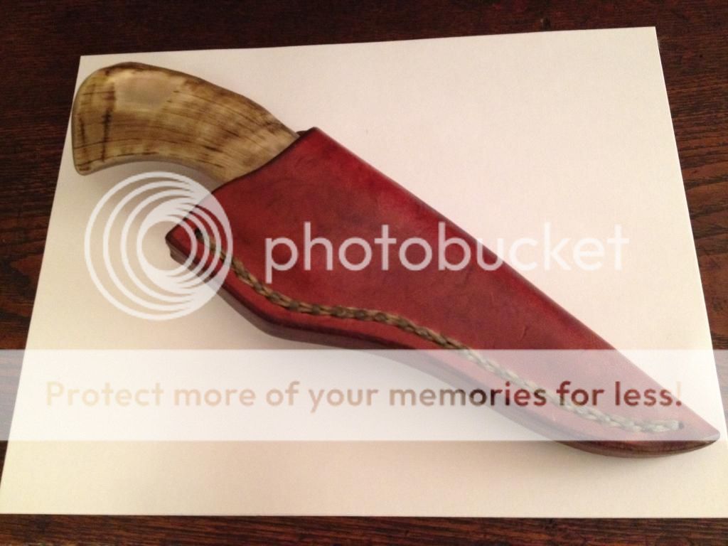 Knife 2: Nathan Summers is a serious student knife maker. He has studied with Jared Williams and Ed Fowler at the Willow Bow Ranch. Knife is in new/unused condition, purchased at the Blade Show in Atlanta, 2014. The workmanship is excellent. Steel used is from the "center shaft of a water-well drill rig from a ranch". A test blade made of the same steel proved extremely tough in destructive testing. Guard is brass or bronze, handle is nicely figured Macassar ebony. Ergonomic contour and a generous grip for large hands. There are two leather stabilized spacers behind the guard. Overall, a terrific knife!