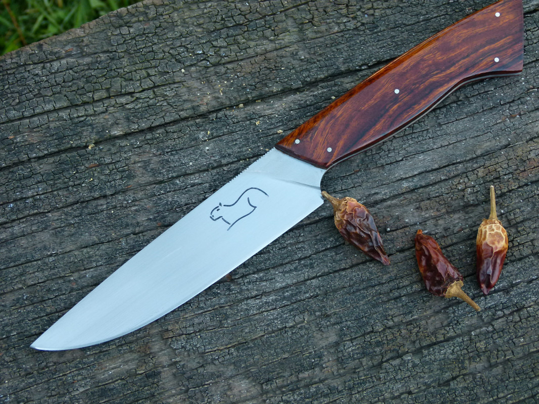 The knife has a professional heat treatment in an electric oven. gave a hardness of 59 hrc, the back has a fine segregation. Truly a piece for a lifetime.