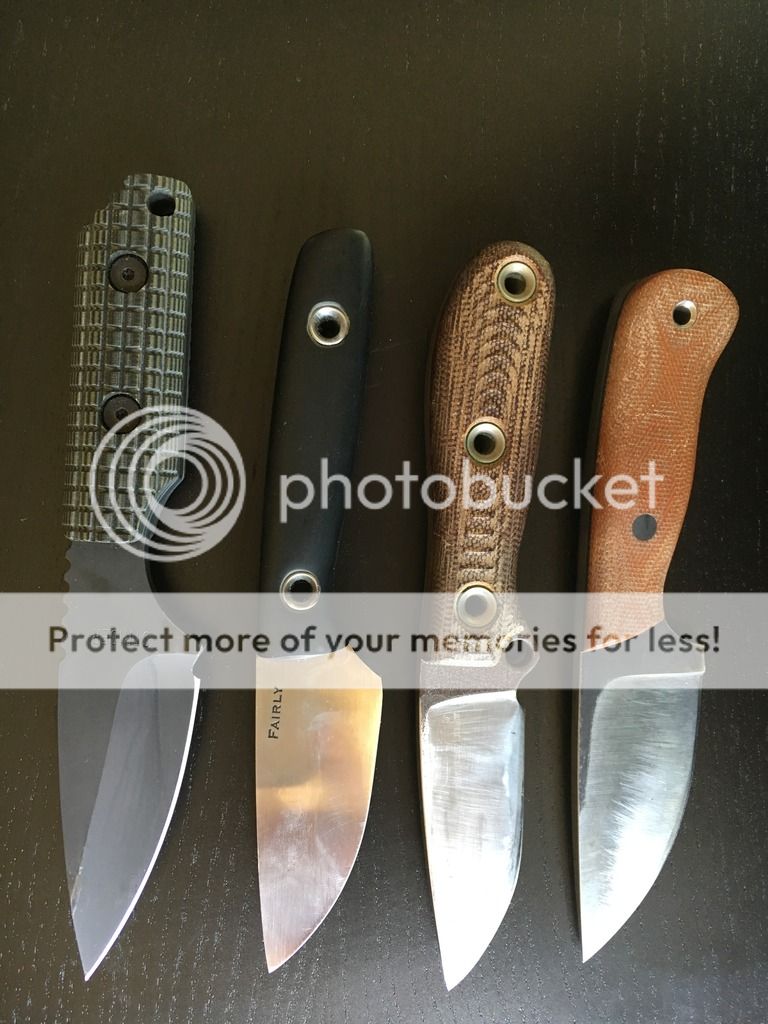 Here I have a few EDC fixed blades for sale because I have not used them or I have stopped carrying them. The customs are listed in the appropriate forum so check there for prices on the Fletcher and Fairly. Prices include Paypal fees and shipping. 18 or older/CONUS only. No trades please, I need the cash. If you think I'm off on the price feel free to make an offer, but make a fair offer or it will be ignored. With that out of the way, first "I'll take it" gets it. Paypal info: d_rivera44@yahoo.com