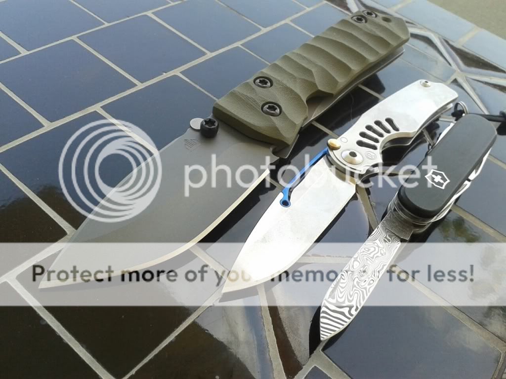 I went with my Benchmade that has been worked really hard , Shrade 340T that I lost in the mountains and found two months later and my Old Leatherman pst that my buddy used on a bike tour across the U.S.A.. They are all still going strong :thumbup: