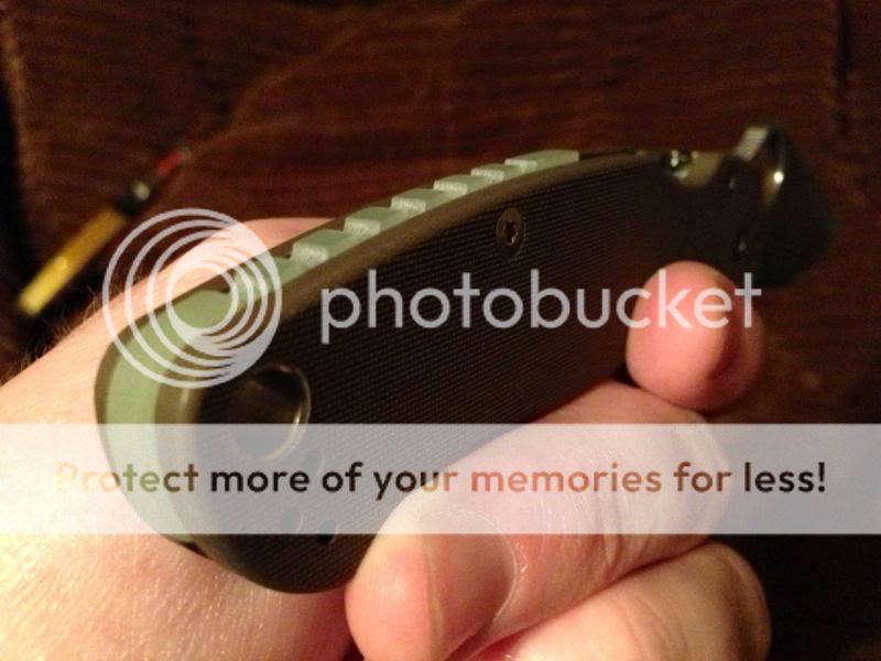 And tomorrow I'll be carrying the Para while I do some more work on that ZT 801 (satin hand rubbing the blade). The back-spacer turned out great - pretty much perfect. I intended to continue the gear patter all the way around but I kind of like how it looks with the jimping stopped short at either end. I love it on my beloved user brown Para 2 Sprint, and it was the perfect use for some jade green G10 scrap I had laying around that gave me a little project to work on while I wait for a BUNCH of material (G10, carbon fiber, micarta, etc) to ship to me and then I can really get "pimpin'"