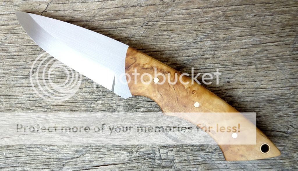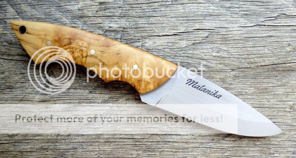 Handle - stabilized maple burl, black g10, brass pins.
