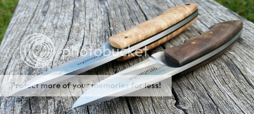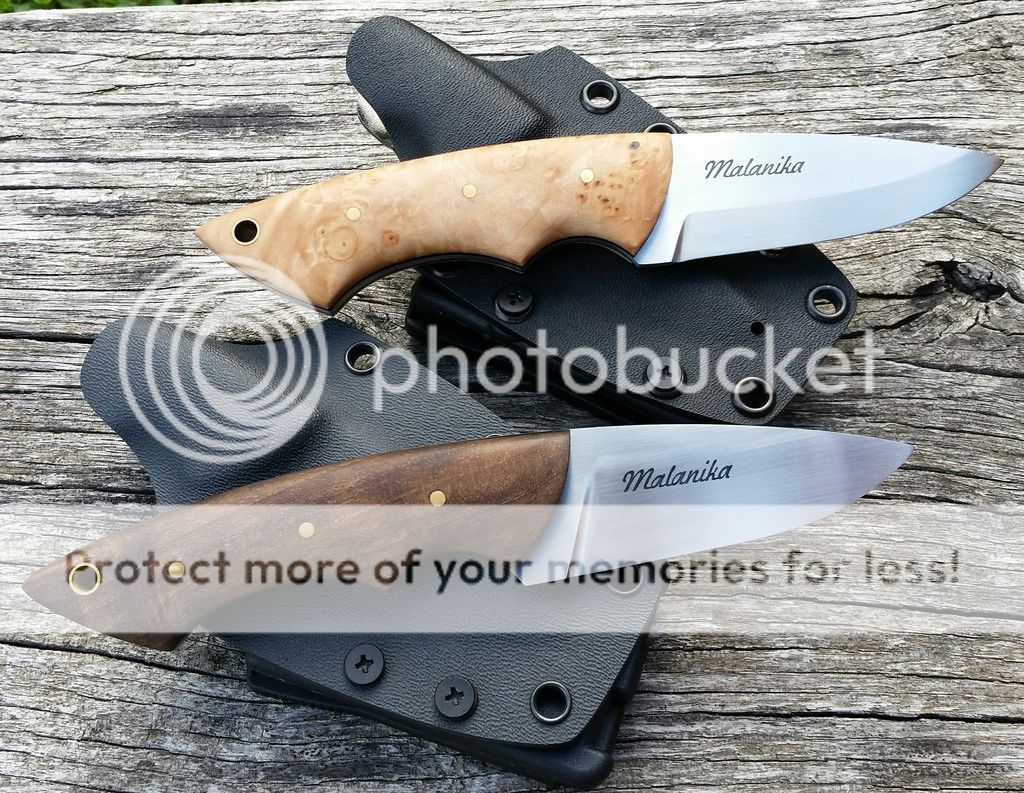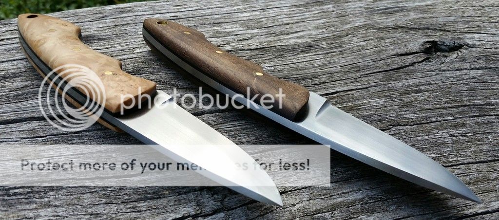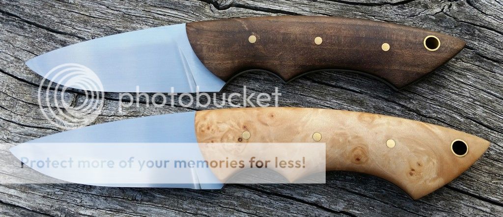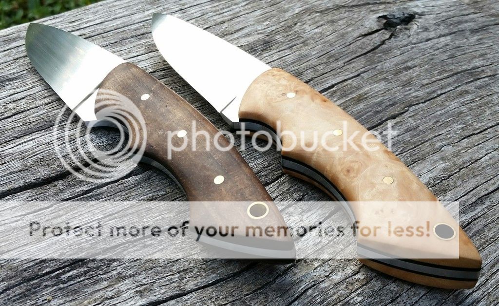 Handles - stabilized walnut ( dark one) and stabilized maple, black g10 liners , brass pins.