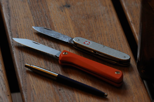 For some reason my Spyderco Vallotton Sub Hilt was calling out this morning. So I left the SR-1 at home and filled my pocket with the Vallotton! Still got the Case Humpback whittler, and Leatherman Juice 2.