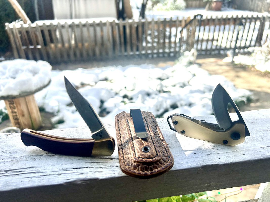 Yeah, the first two photos were from yesterday afternoon, right after I pulled it from my mailbox. The other four photos were from early this morning.Beautiful knife. I see some snow in a couple photos. Please keep that in your area.