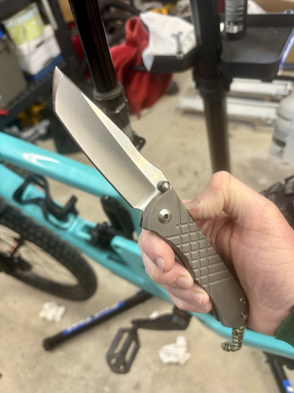 Sounds like a busy day, by any chance you can rearrange your day a little bit, there’s always tomorrowToday’s honey-do list includes, but is not limited to: trim bushes, cut the lawn, wash the dog, make dinner reservations / send invites for the wife’s bday dinner, straighten up the garage, wash the motorcycle and sneak in a few miles of shredding on the mountain bike. But first, a knife pic!