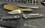Quit complaining. It seems like every time I go out the back door, the vultures start circling.Mornin fellas and felletes! These tiny, little, bright green flying bugs have been super attracted to me lately for some reason haha. Seems like every time I go outside one lands on me. I didn't see this one (on the finger choil of the Manix) until looking at the picture just now.