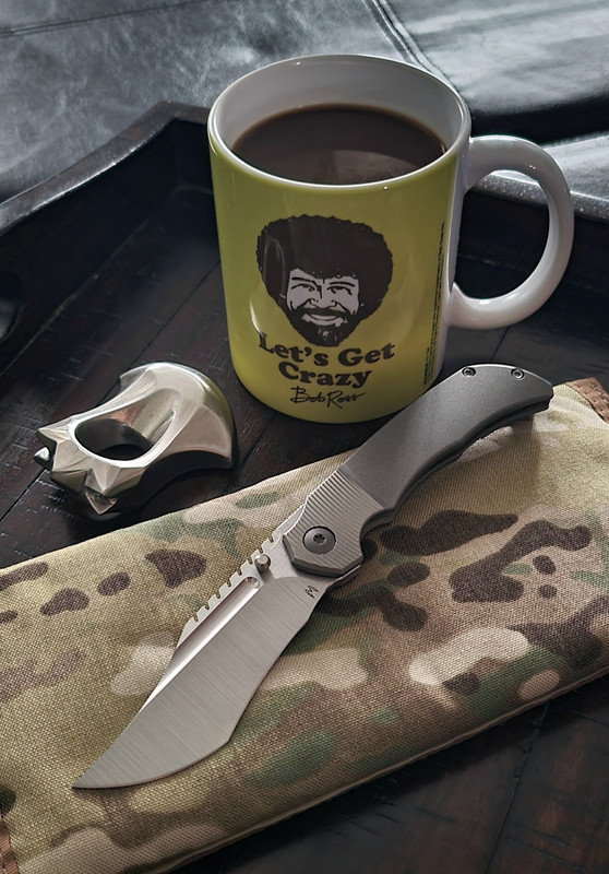 That is the Eustler DUK. It’s about the length of a large Sebenza and this particular one is an older one. It is milled Ti with zirc accents and a 20CV blade. Since it is older…it still runs on washers (new stuff on bearings).Tell me about that knife please! How do you like it?