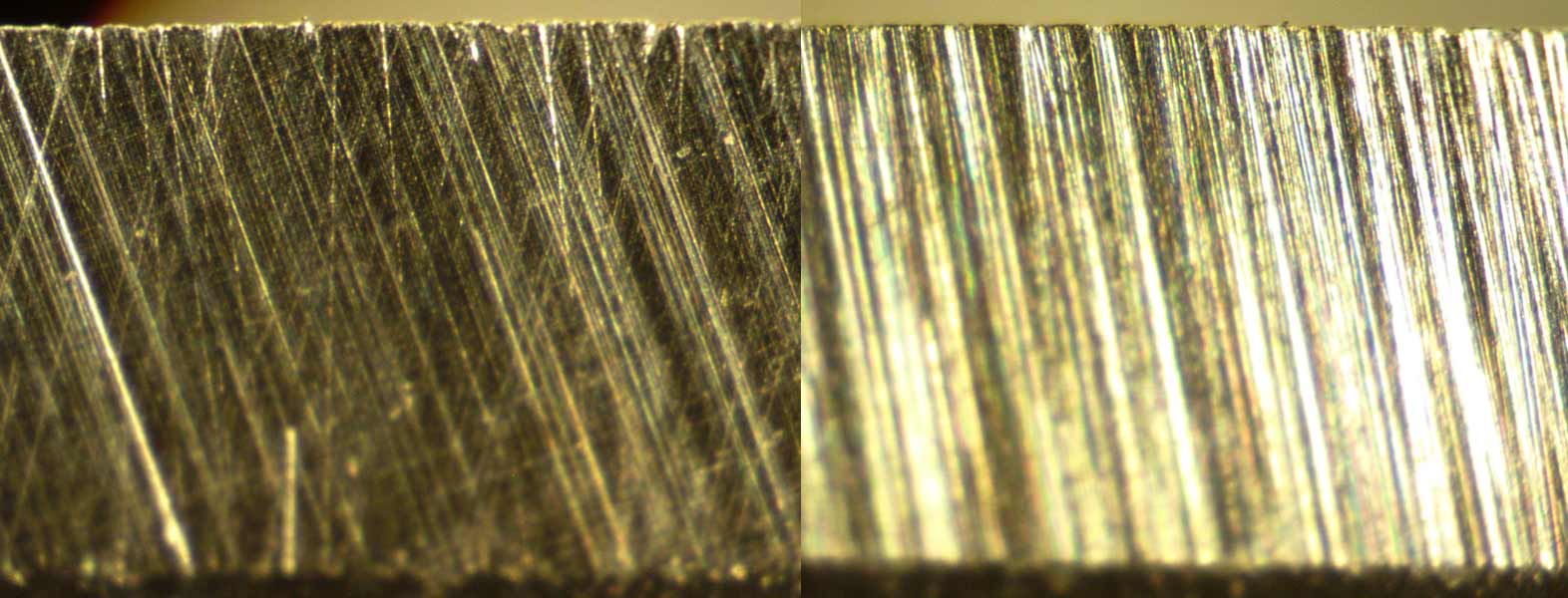 On to the 2300 stone for around 2 minutes. Photo are the same except the one on the right is a little higher magnification.