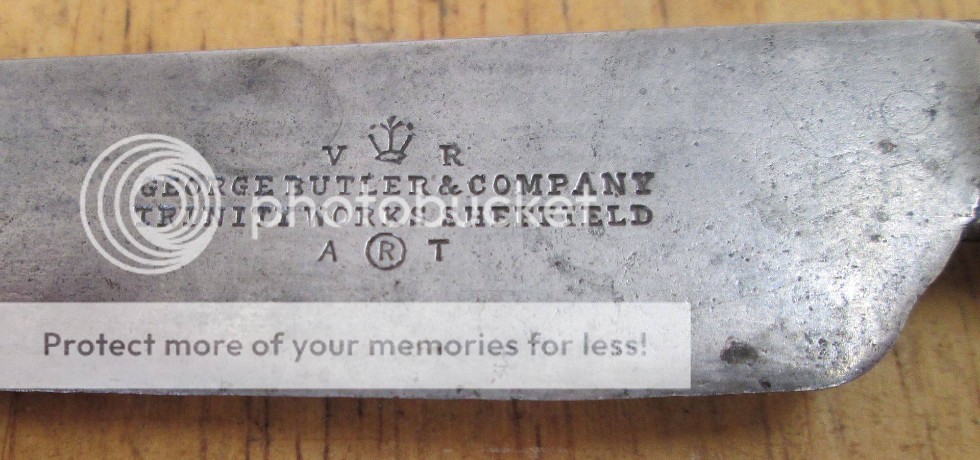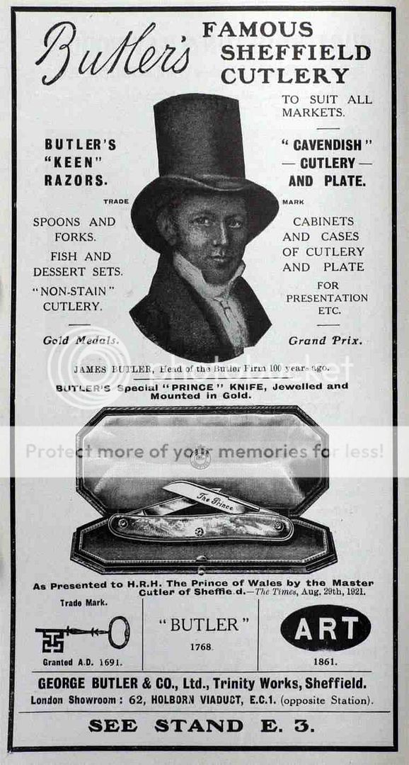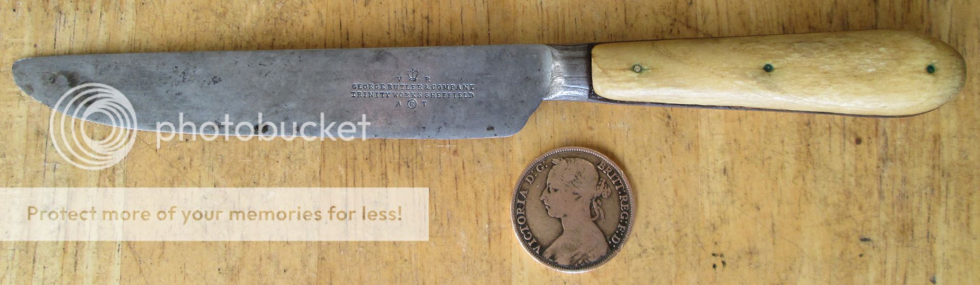 I spotted this early Victorian table knife on a market stall, and think it is quite interesting (note the puddle weld on the pile side). Cleaning a century or so of hardened muck out from underneath the scales is taking me an inordinately long amount of time though! The stamp is nice and clean carrying the name of the company and the initials of Victoria Regina (reigned 1837-1901). Butlers went back to the 18th century, but only became George Butler & Company in the 19th century. The ART mark on the knife was acquired in 1861, and Butlers acquired the key mark, which is perhaps better known, in about 1882. Trinity Works was used by the company at two locations, in the early 19th century (by 1816), and after they moved to larger premises in 1864. In 1883, they became a limited company. Butlers was liquidated in 1952.