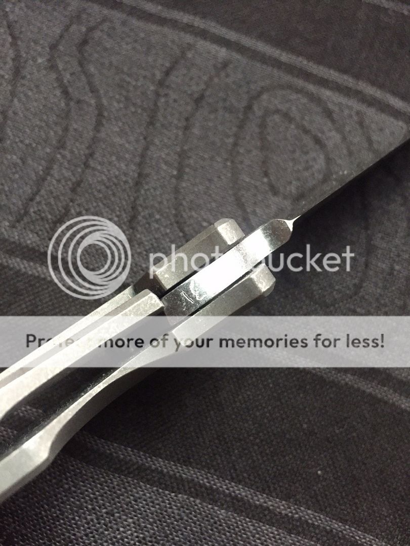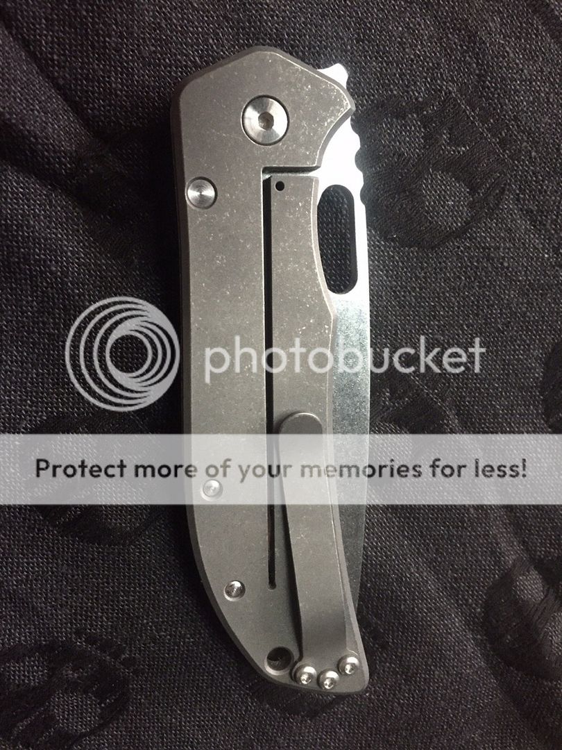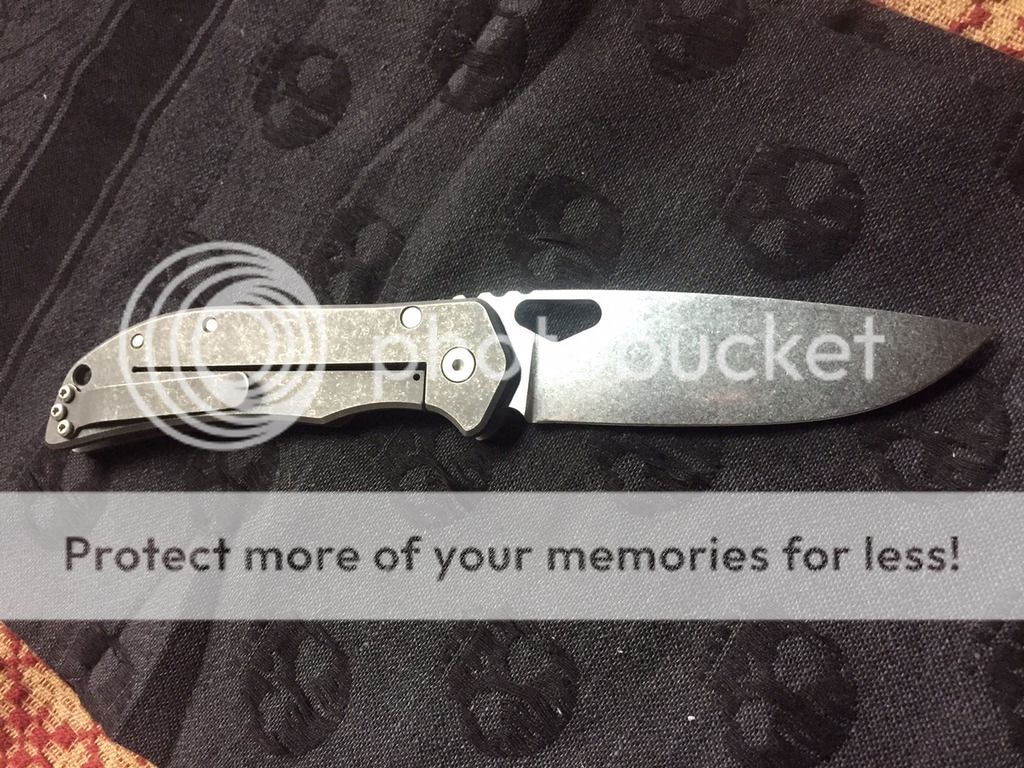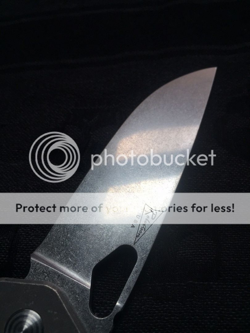 The blade is stonewashed CPM 3V and is perfectly centered, smooth action and rock solid lockup. It has the original edge and is literally like new.