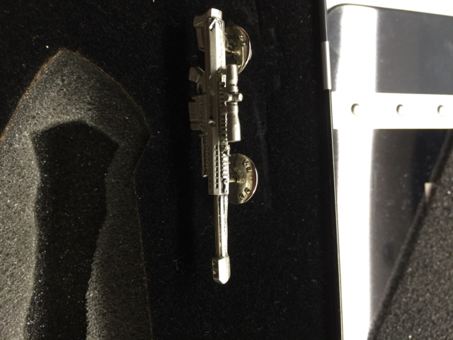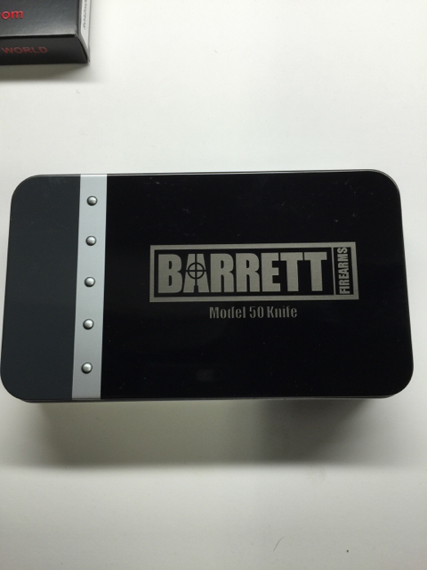 The knife is branded as a Barrett Firearms knife, but it is an Emerson through and through, and it is obviously a collectors item; it comes in a tin box with a Model 82A1 pewter lapel pin; they're available from Barrett for 180.00; they also have a signature edition which is a numbered series with Ronnie Barrett's signature on the blade.