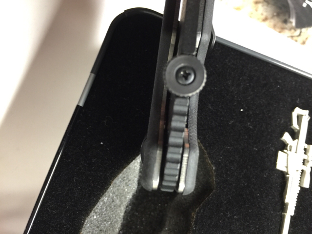 Anyway, here are some pics of this very awesome Emerson knife; notice all the extra attention to details in the handle and the finish. I can tell they really worked to make this a special blade, like the slots mimicking the upper receiver of the 82A1.