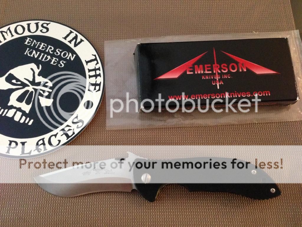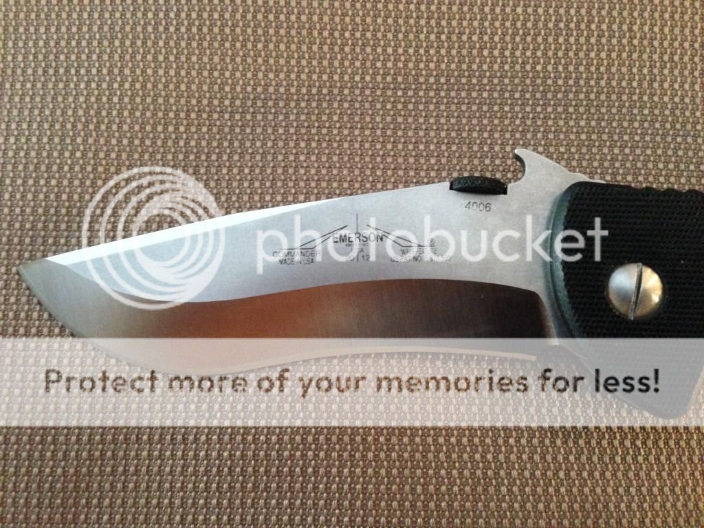 Hello BF, For sale is a like new Emerson Commander. I have never pocketed, just fondled. I changed all the hardware including the pivot, handle screws, pocket clip and pocket clip screws to satin instead of black which is what it came with. Lock up is a bit sticky but I really have not tried to break it in. Detent is good. Blade is a bit off center. When you close the blade it sounds like it is hitting one of the pocket clip screws. I was going to shave down the pocket clip screws but don't have the proper tools to do so. I will include all of the black hardware that the knife came with as well including pocket clip etc. Commander comes with box and baggy as well as an Emerson sticker seen in the pic. Quick sale price of $150 shipped within Canada or USA. Paypal only, gift or + fees. TY