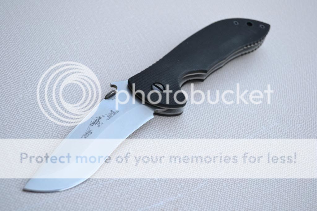 For sale is a used Emerson Commander. This has been carried and shows some scuffs, mostly on the non-logo side of the blade. I tried to show it, but it's tough to photograph. I also lightly sanded down the G10 on the clip side so it wouldn't shred my pocket as bad. Ran the edge across the paper wheels & it's a decent shaving sharp edge. Again, not a safe queen, it's a user. $60 shipped in CONUS. Paypal preferred, no fees. Thanks for looking. SOLD!!