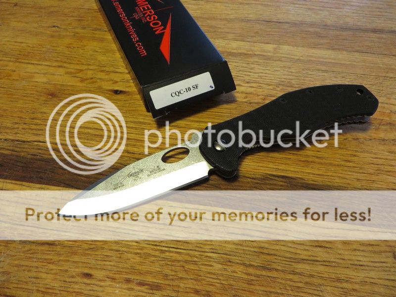 1.) Emerson CQC-10 SF - $150 - 8.5" OAL with 3.75" 154CM blade - Bought new from Emerson. Used and sharpened. Wave removed. One of my favorite Emersons ever.