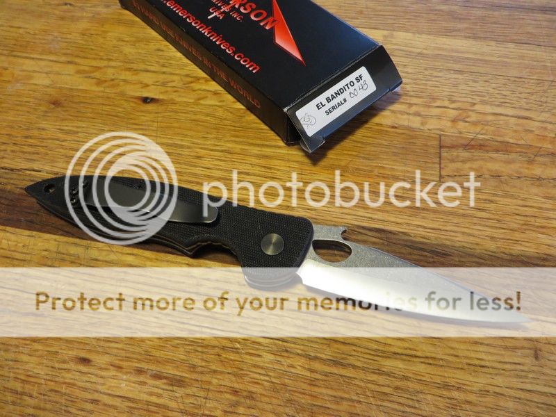 2.) Emerson El Bandito - $160 ***SOLD*** - 8.5" OAL with 3.5" 154CM blade - Second owner, used and sharpened. Very good condition, and is easy to carry.